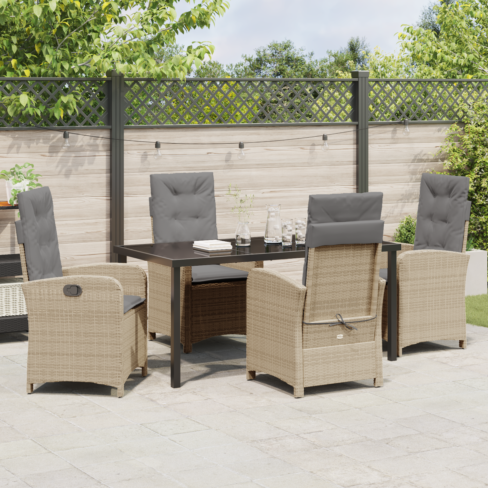Zahradní jídelní souprava s polštářem 5 pcs Béžová polyratan