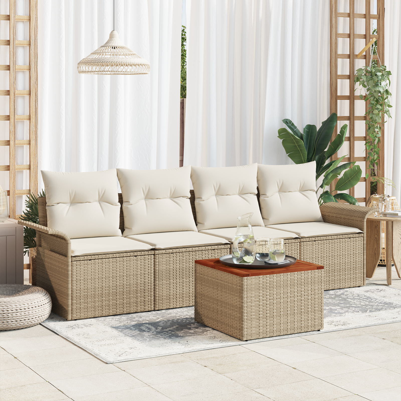 Tento modulární zahradní gaučový set představuje venkovní relaxaci na jiný level díky jeho úžasné přizpůsobivosti a stylovému vzhledu. S moderním designem, který má čisté linie a minimální ozdoby, je ideální pro zahrady a terasy. Kombinace polyratanu a masivního akáciového dřeva mu dodává sofistikovaný vzhled, který potěší každého, kdo ocení eleganci a funkčnost. Je určený pro venkovní použití, což zaručuje odolnost vůči počasí a skvělý vzhled i v nepříznivých podmínkách.