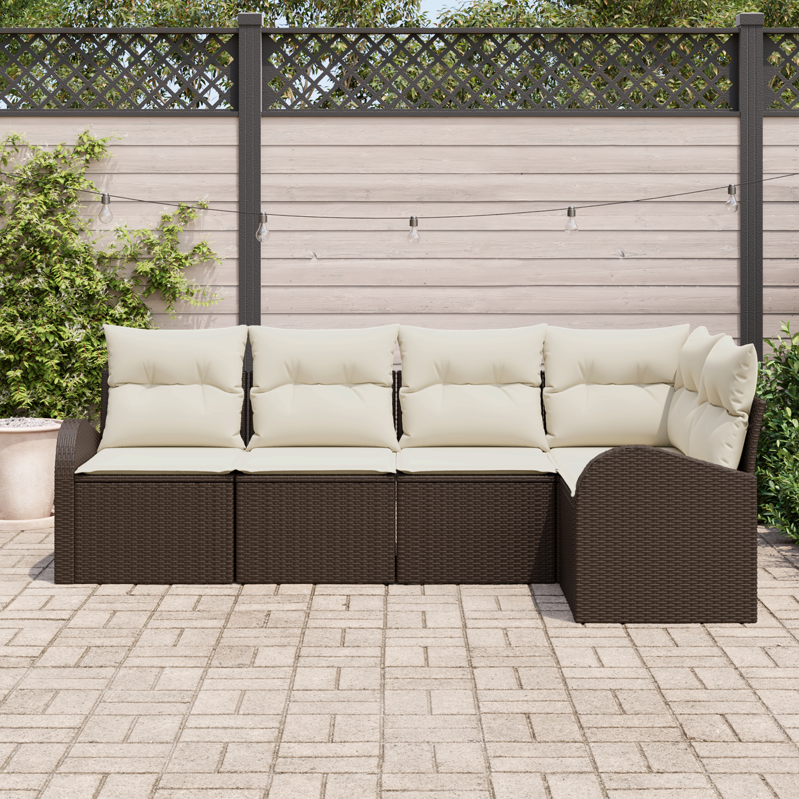 Sada zahradních pohovek 5 pcs Hnědá a bílá Poly ratan