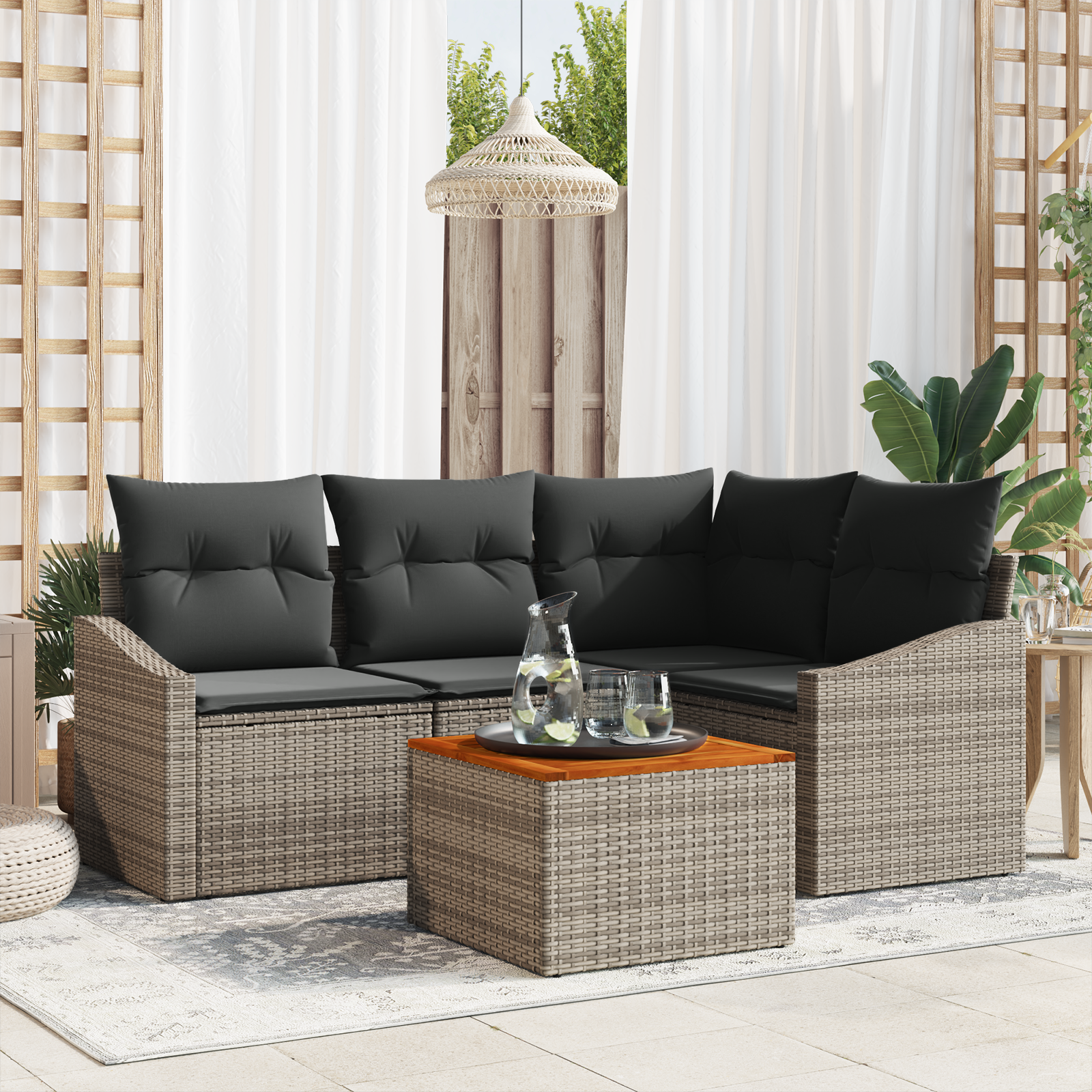 Sada zahradních pohovek s polštářem 5 pcs Šedá polyratan
