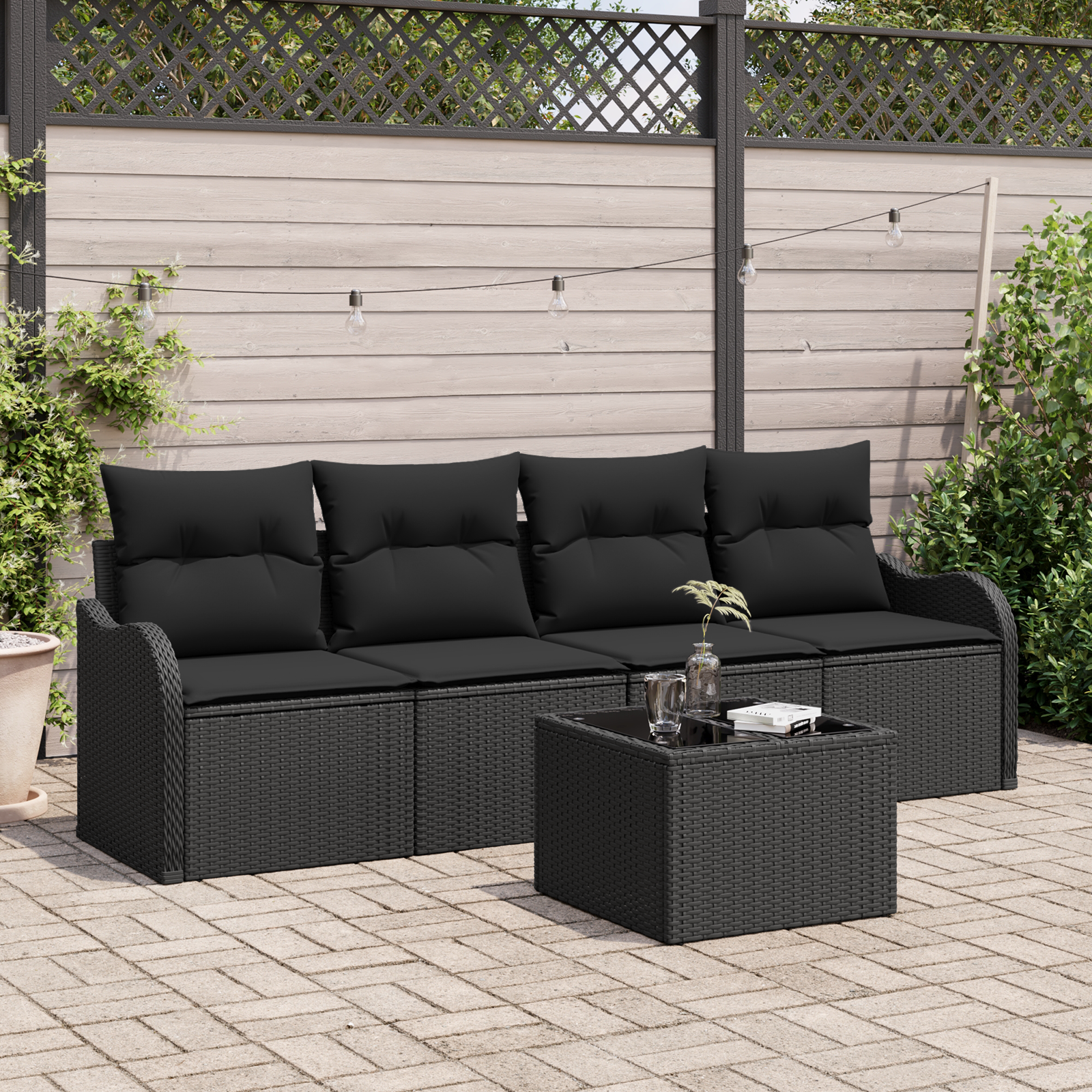Sada zahradních pohovek s úložištěm 5 pcs Černá polyratan