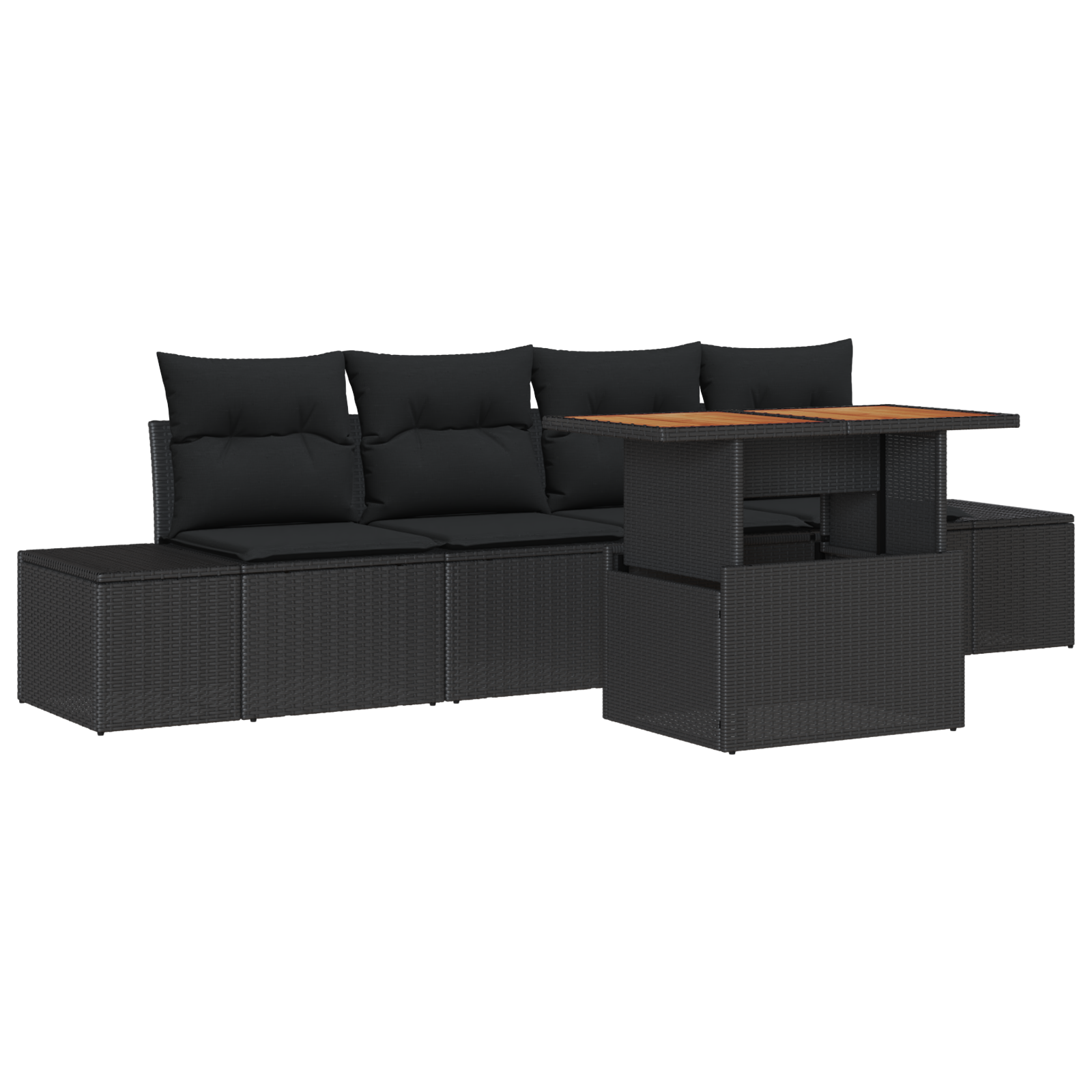 Zahradní jídelní souprava s polštářem 5 pcs Černá a hnědá