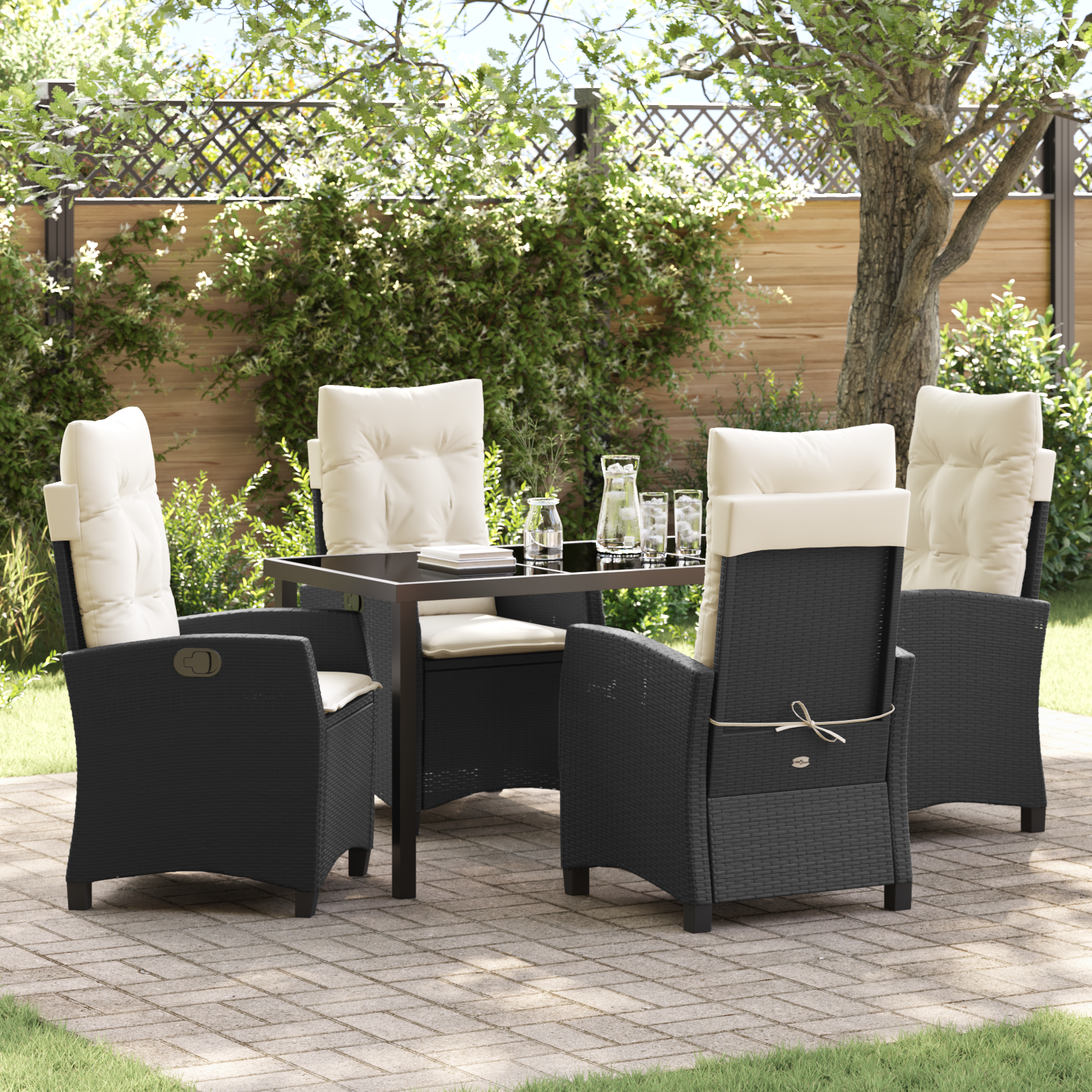 Zahradní jídelní souprava s polštářem 5 pcs Černá polyratan
