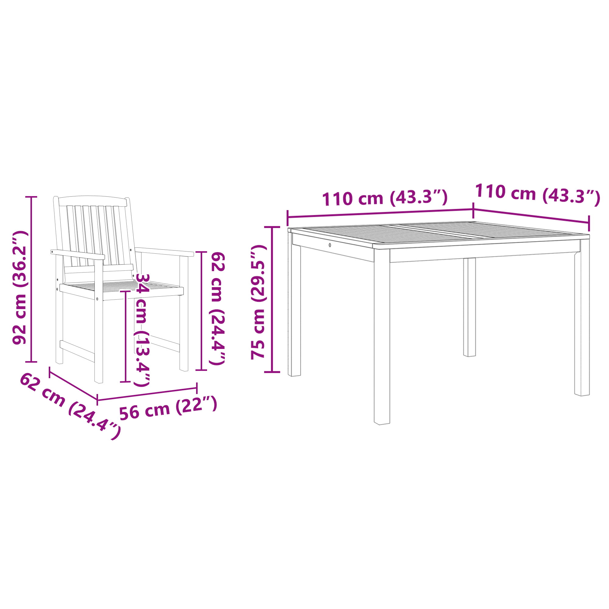 Tento rustikální venkovní jídelní set je skvělý kousek pro jakoukoli terasu nebo zahradu. Vyrobený z masivního akáciového dřeva, má příjemný teplý vzhled, který ladí s všemi styly, a dost místa pro rodinu a přátele. Jeho rustikální šarm dodává útulný dojem, ideální pro venkovní jídlo.