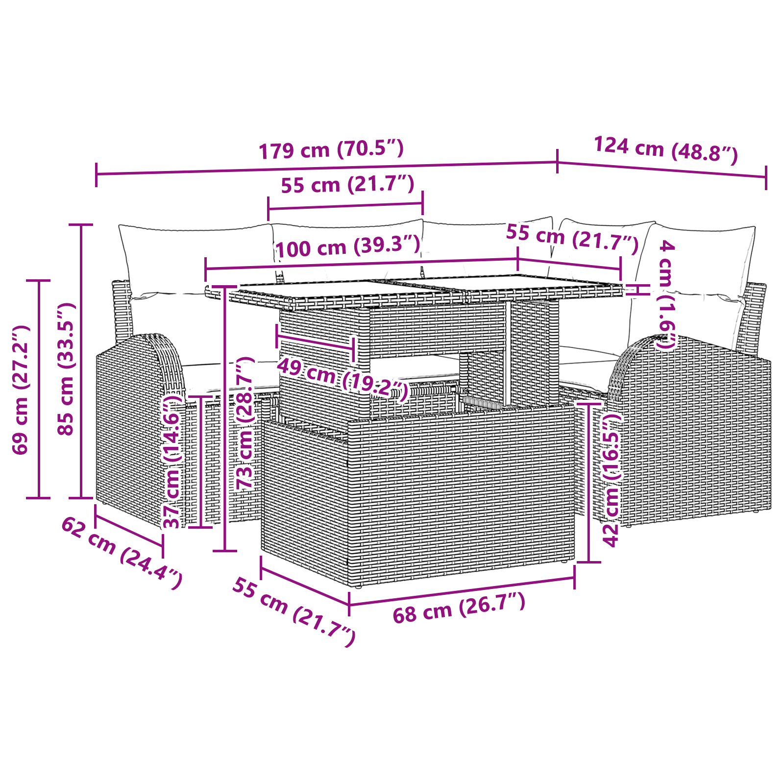 Tato modulární zahradní sedací souprava přináší skvělou kombinaci stylu a funkčnosti, ideální pro moderního venkovního fanouška. Je navržená pro prostornou zahradu nebo terasu, kde se skvěle hodí do dynamického venkovního stylu. Představte si, jak svou zahradu přetvoříte na útulný útěk s nábytkem, který se přizpůsobí různým příležitostem. Lesklý práškově lakovaný povrch přidává elegantní, ale uvolněný pocit a mění pohodlí pod širým nebem na příjemné vedro pro malé i velké akce.