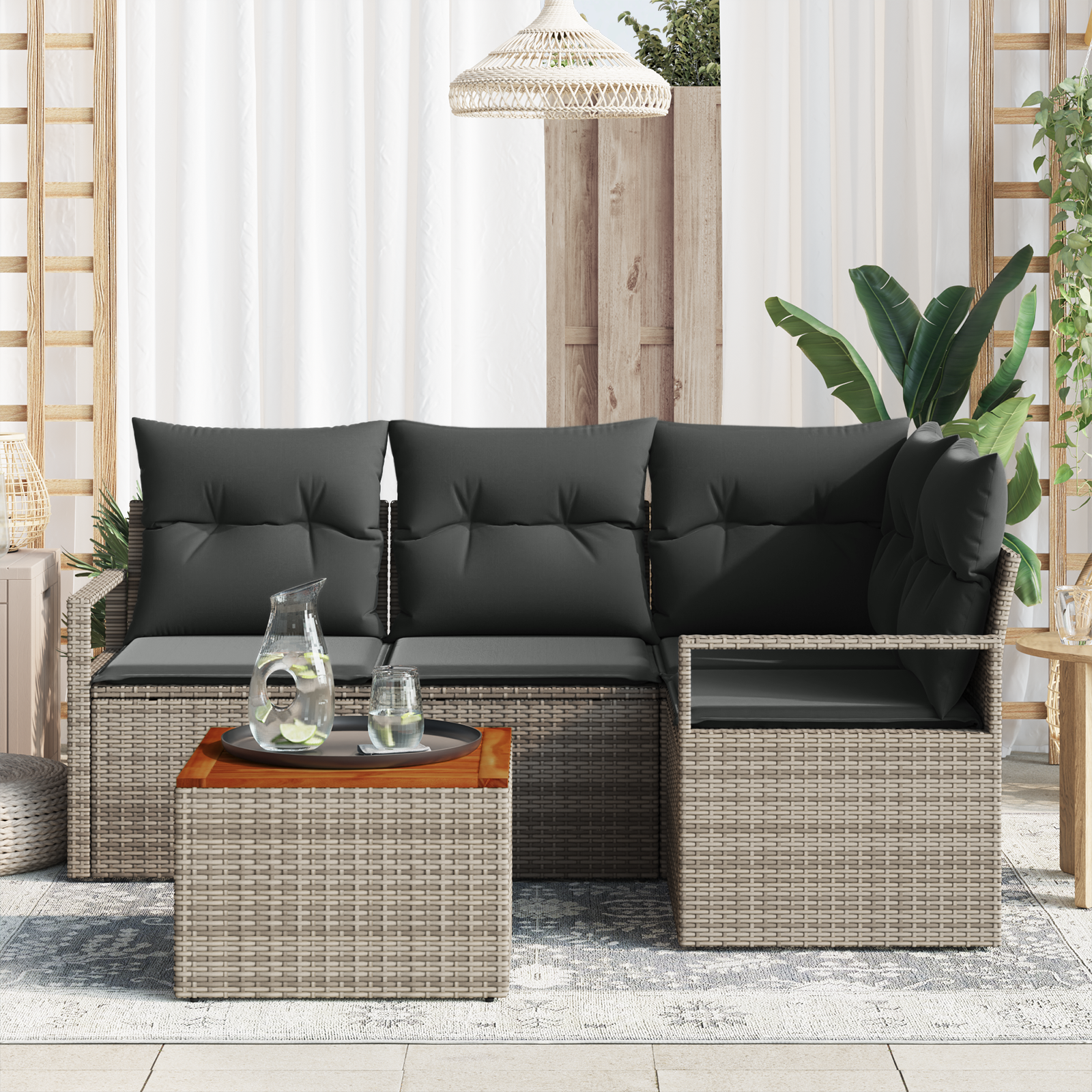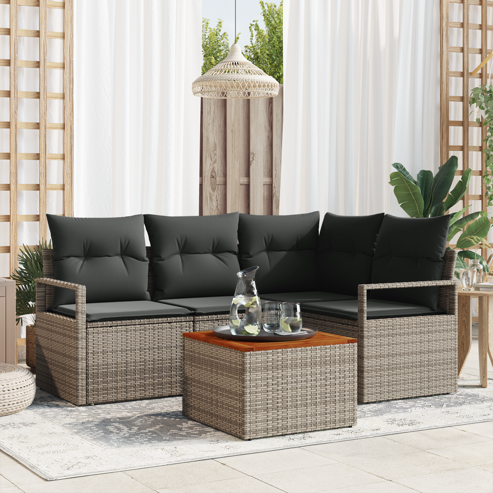 Sada zahradních pohovek s polštářem 5 pcs Šedá Poly ratan