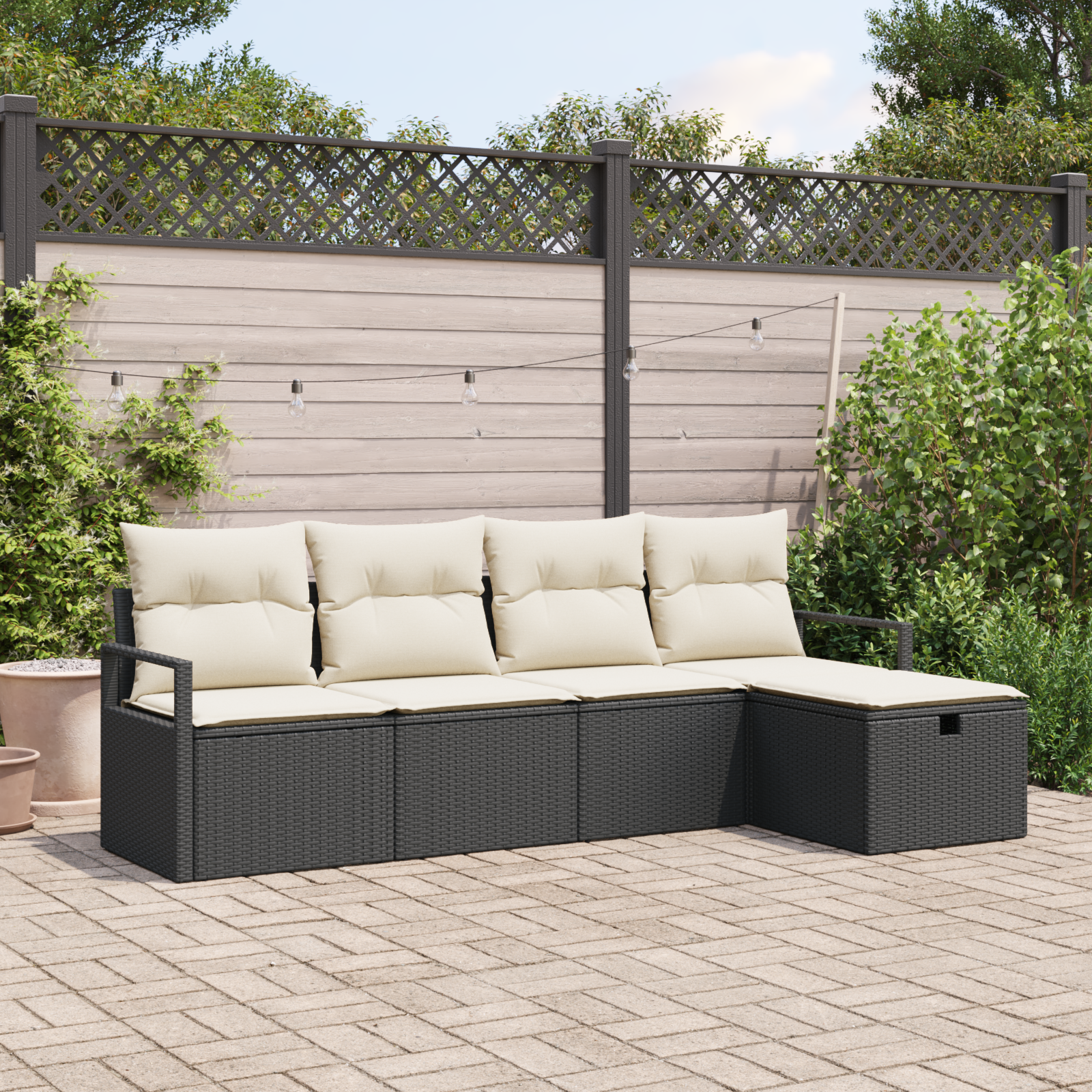 Zahradní souprava na pohovku má moderní styl s čistými liniemi a všestranným designem. Určena pro venkovní použití, její elegantní a modulární provedení tě zve k relaxaci a setkáním na zahradách nebo terasách. Moderní vzhled se zvýrazňuje díky kombinaci lehkých a odolných materiálů, což dělá z této soupravy atraktivní volbu pro ty, kdo chtějí spojit estetiku a praktičnost venkovního nábytku.