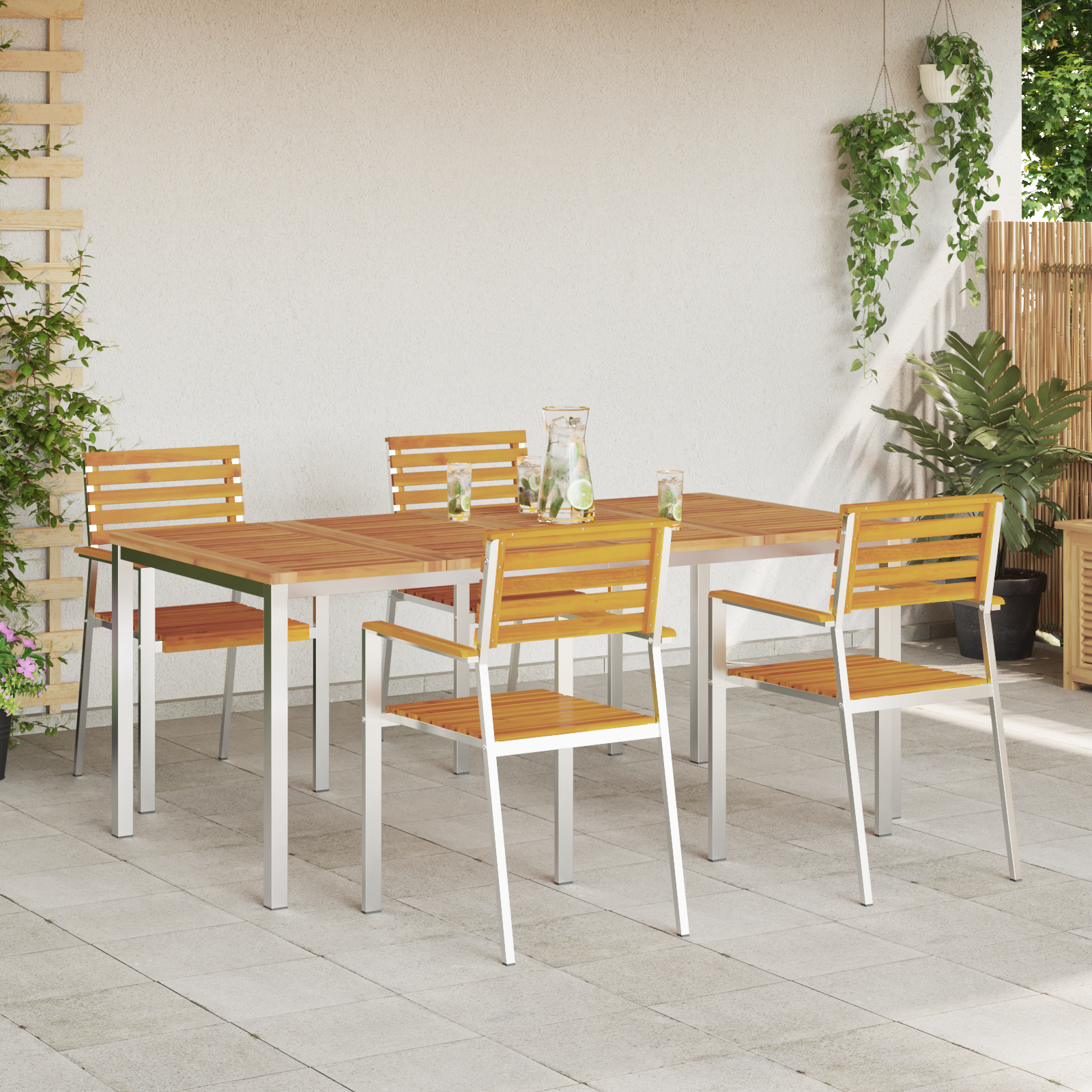 Tento moderní outdoorový jídelní set dodá vaší zahradě nebo terase šmrnc. Je určen pro ty, kteří mají rádi minimalistický styl. Čisté linie a praktické prvky ho dělají skvělým jak pro klidné večeře, tak i pro živé akce. Jako ústřední prvek venkovního prostoru se skvěle hodí do každého moderního designu a poskytuje pohodlné a přátelské prostředí pro jídlo a konverzaci venku.