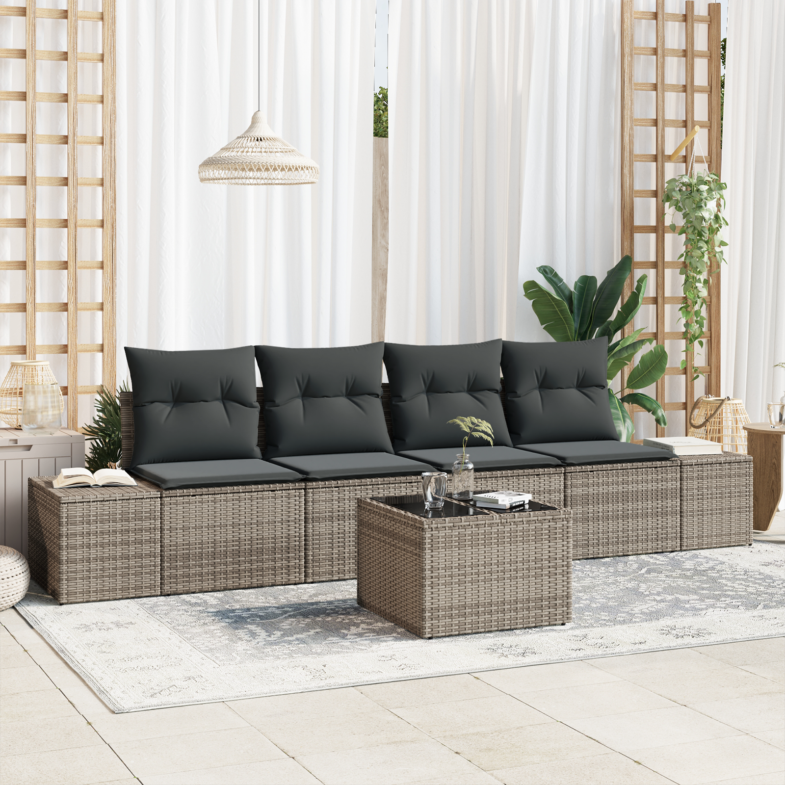 • Doporučené použití: Skvělá pro jaro a léto, tahle sada je super do zahrad, na terasy a otevřená patia. Její flexibilní design a voděodolné materiály vám zajistí, že se to dá použít v různých podmínkách, takže si můžete užít teplé večery s přáteli nebo si jen tak relaxovat venku.