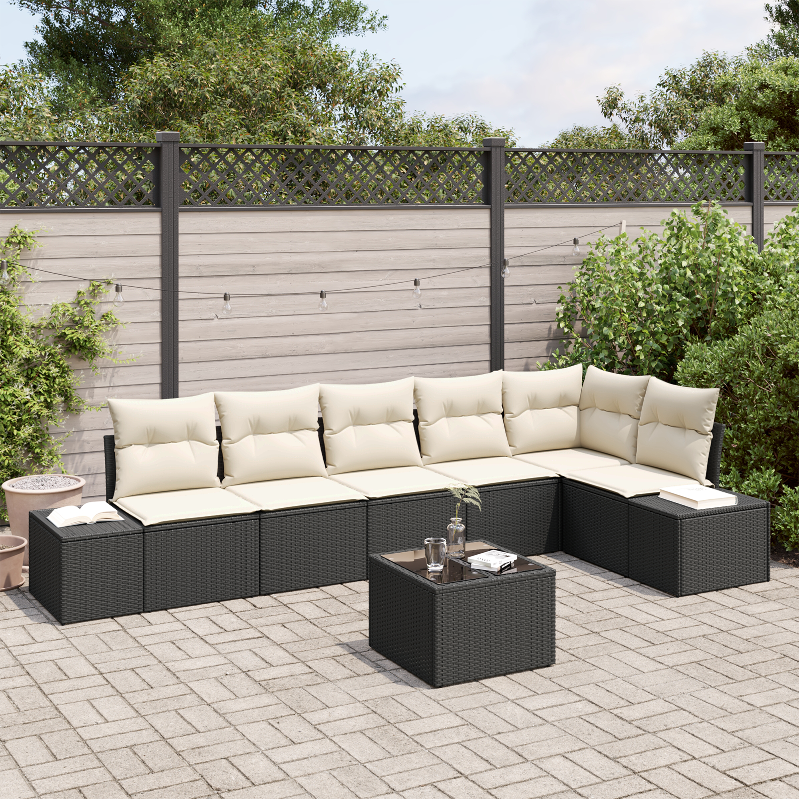 Tento modulární zahradní gauč na první pohled sladí moderní vzhled s praktičností, takže se skvěle hodí do jakékoli zahrady nebo outdoorového prostoru. Elegantní design vyniká čistými liniemi a multifunkčností, přesně jak se nosí v moderním bydlení. Je ideálním kouskem pro venkovní nadšence, kombinuje skvělý vzhled s funkčností a poskytuje luxusní místo na relaxaci. Skládá se z různých modulů, což umožňuje úpravu podle vašich představ a potřeb. Tento set dodává šarm a je perfektní pro setkání s přáteli nebo klidné chvíle o samotě, přičemž nabízí pohodlí i odolnost.
