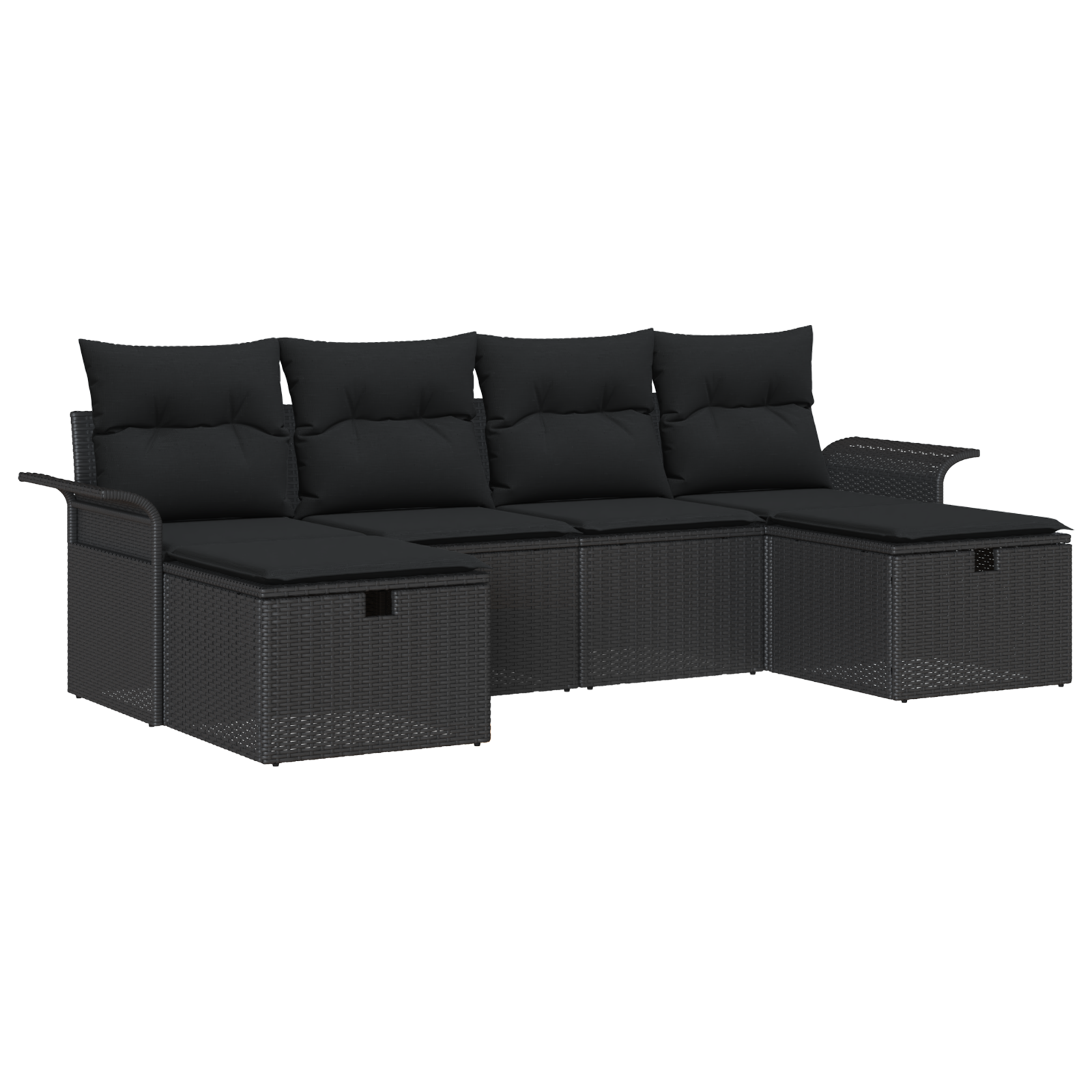 Sada zahradních pohovek s polštářem 6 pcs Černá polyratan