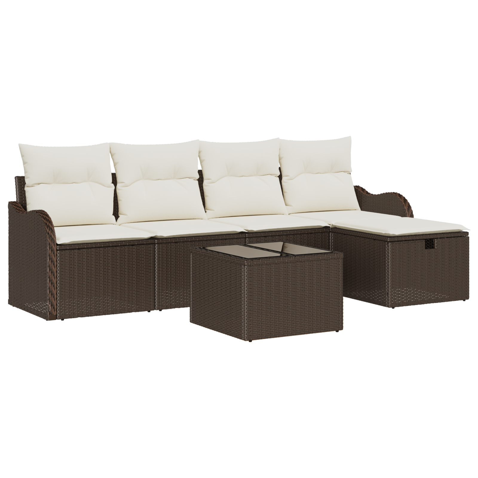 Sada zahradních pohovek s polštářem 6 pcs Hnědá Poly ratan