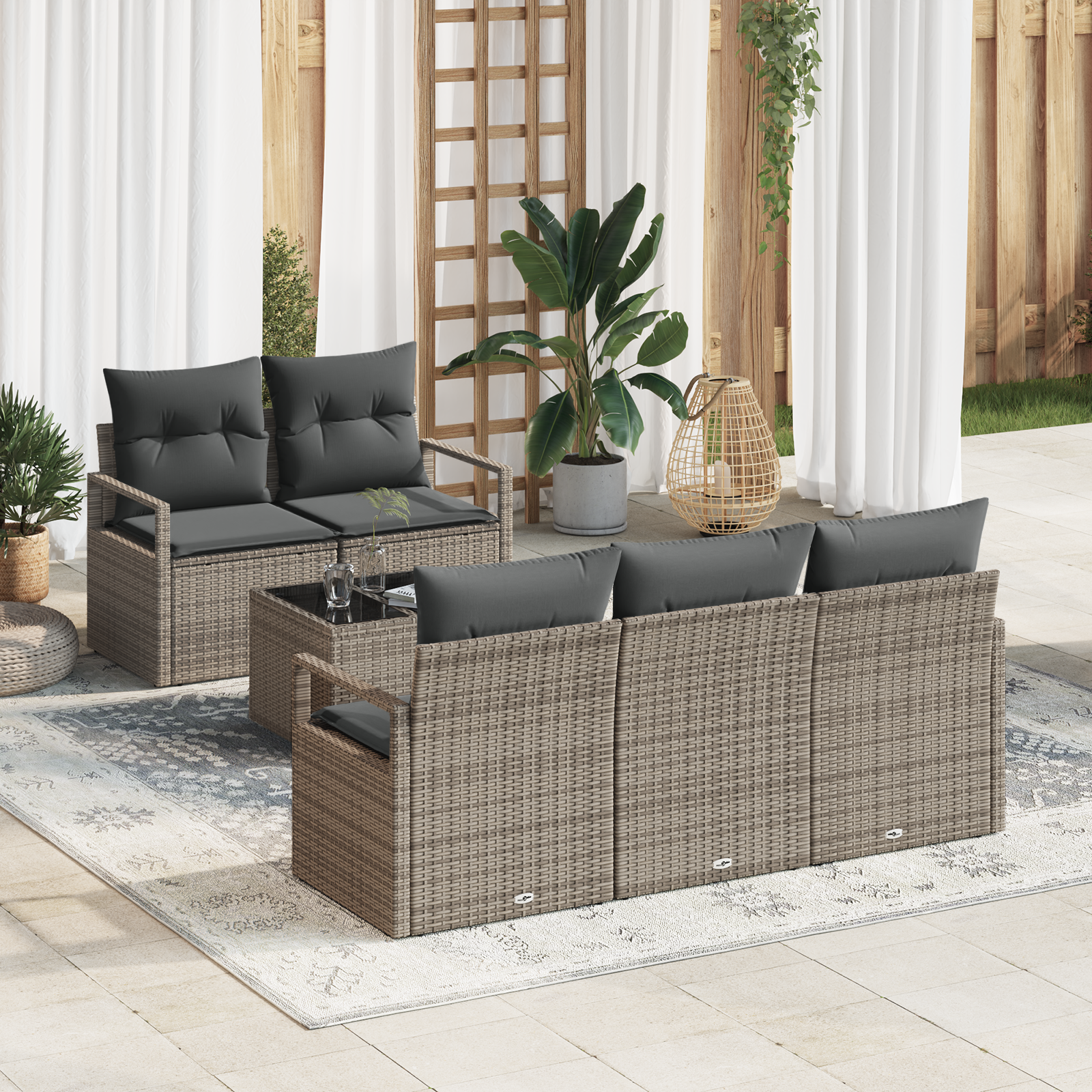 Tato sada zahradních pohovek přináší moderní styl s elegantními liniemi a praktickým designem. Je skvělá pro venkovní sezení na jaře a v létě. Pletená struktura dodává šmrnc a hodí se jak pro společenské akce, tak pro klidné chvíle na vaší zahradě nebo terase.