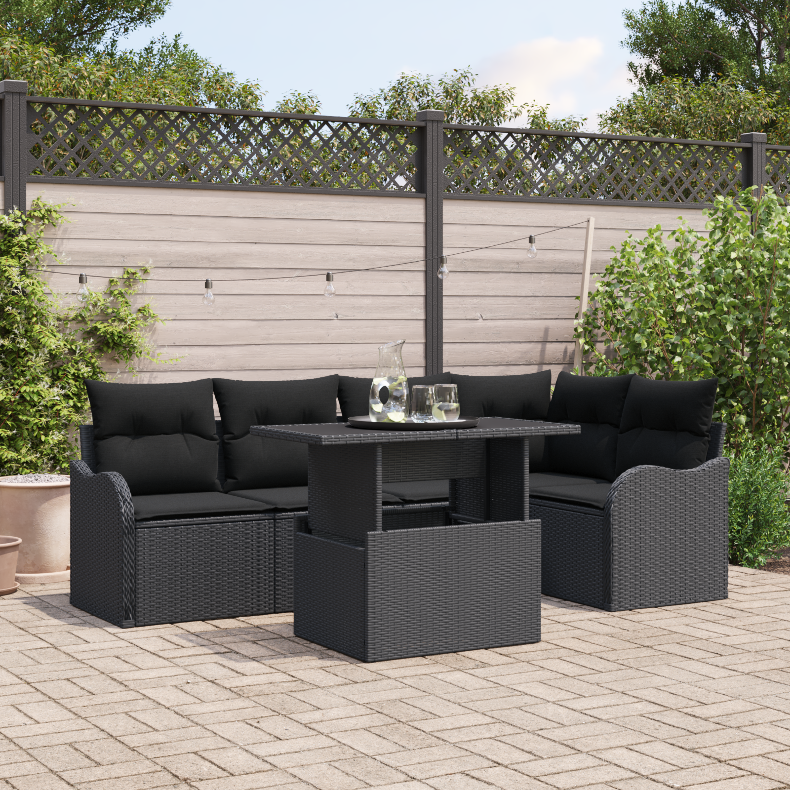 Sada zahradních pohovek s polštářem 6 pcs Černá Poly Ratan