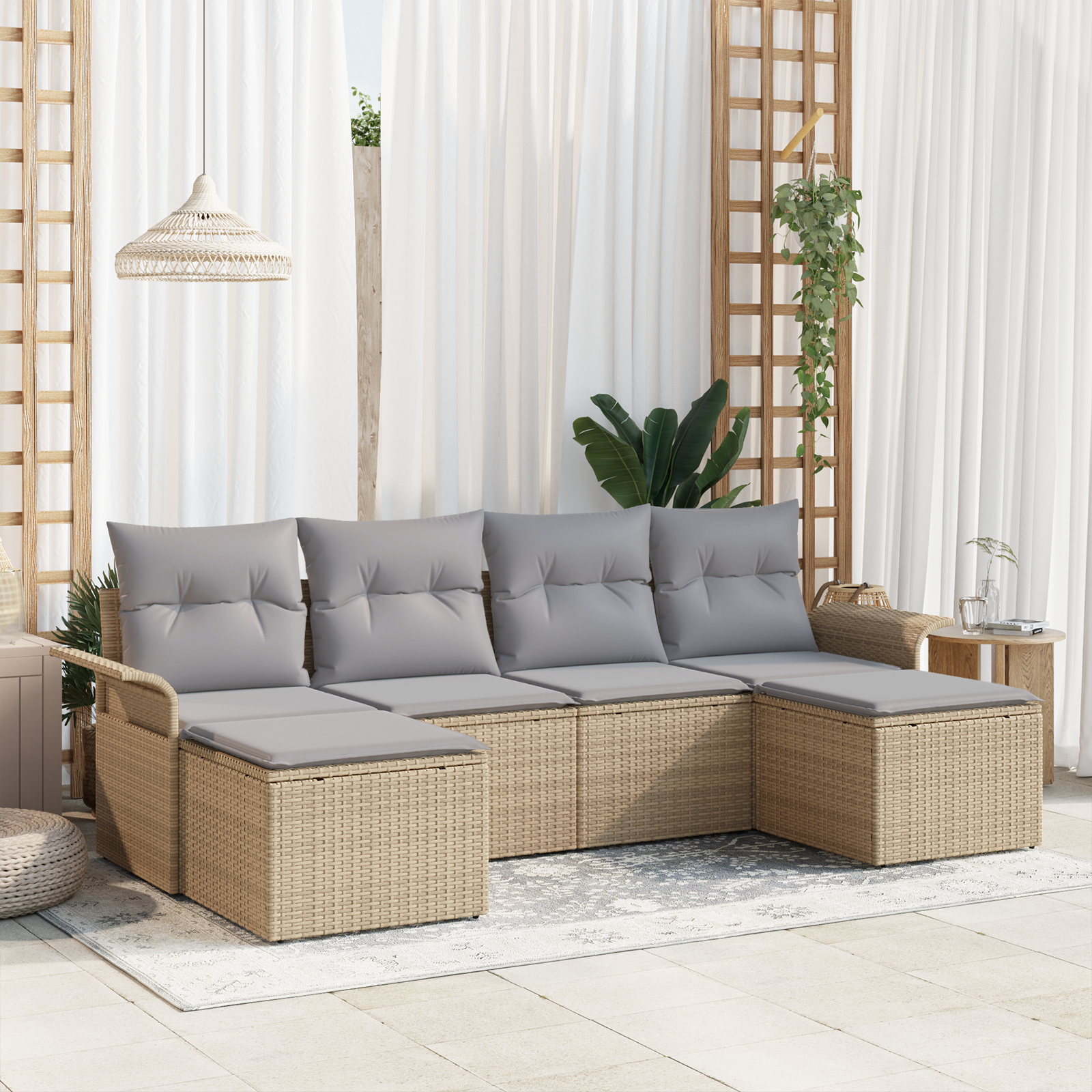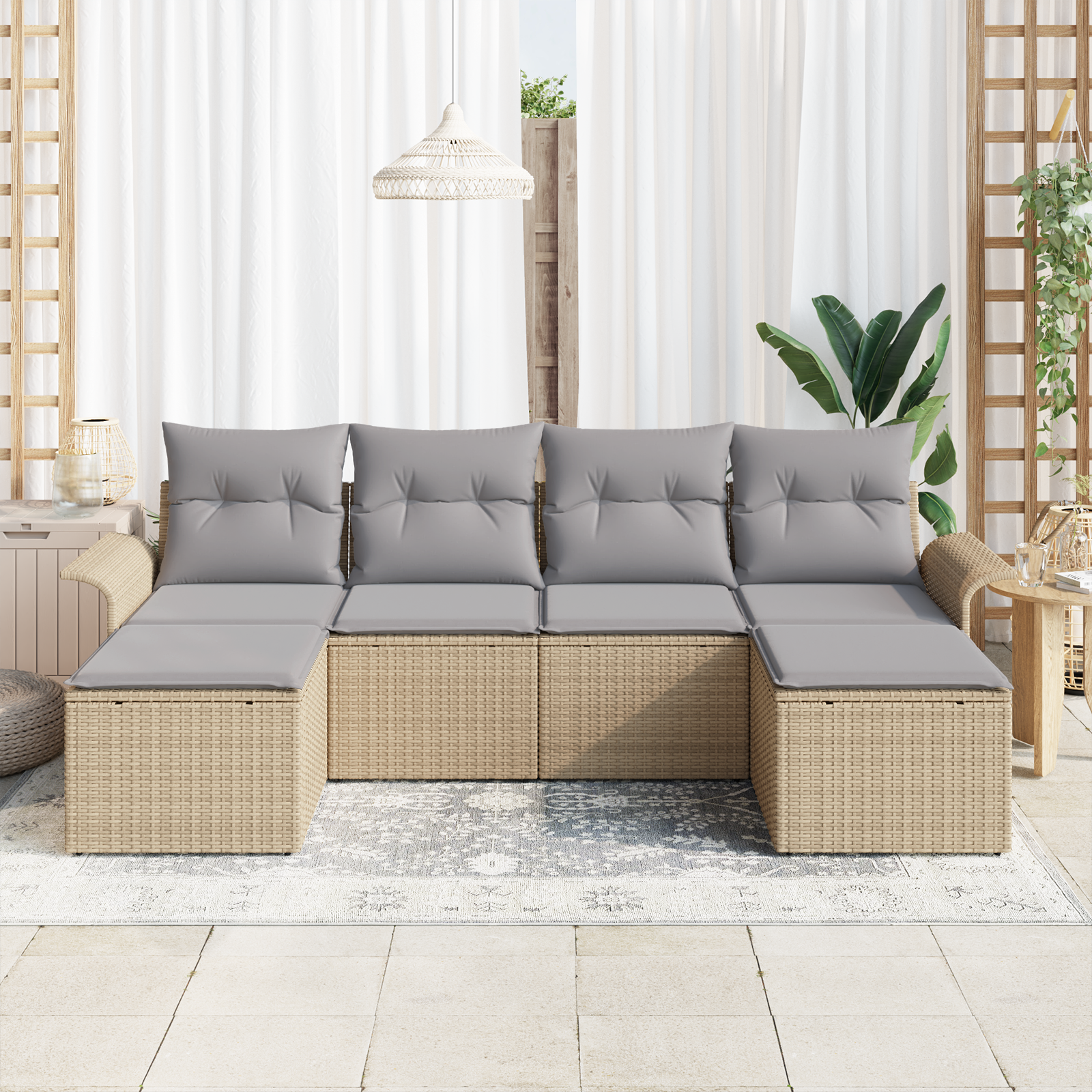 Tahle modulární zahradní sedací souprava krásně spojuje moderní styl s funkčností a stává se skvělým středobodem venkovních prostor. Její hladké linie a lesklý design obohacují každou zahradu nebo terasu a vytváří příjemné místo pro odpočinek a společenská setkání. Je navržená tak, že se dá snadno přizpůsobit, takže jí můžete měnit podle různých akcí a osobních preferencí.