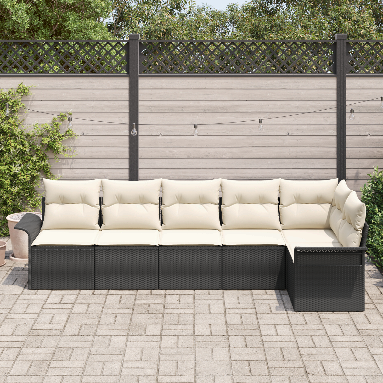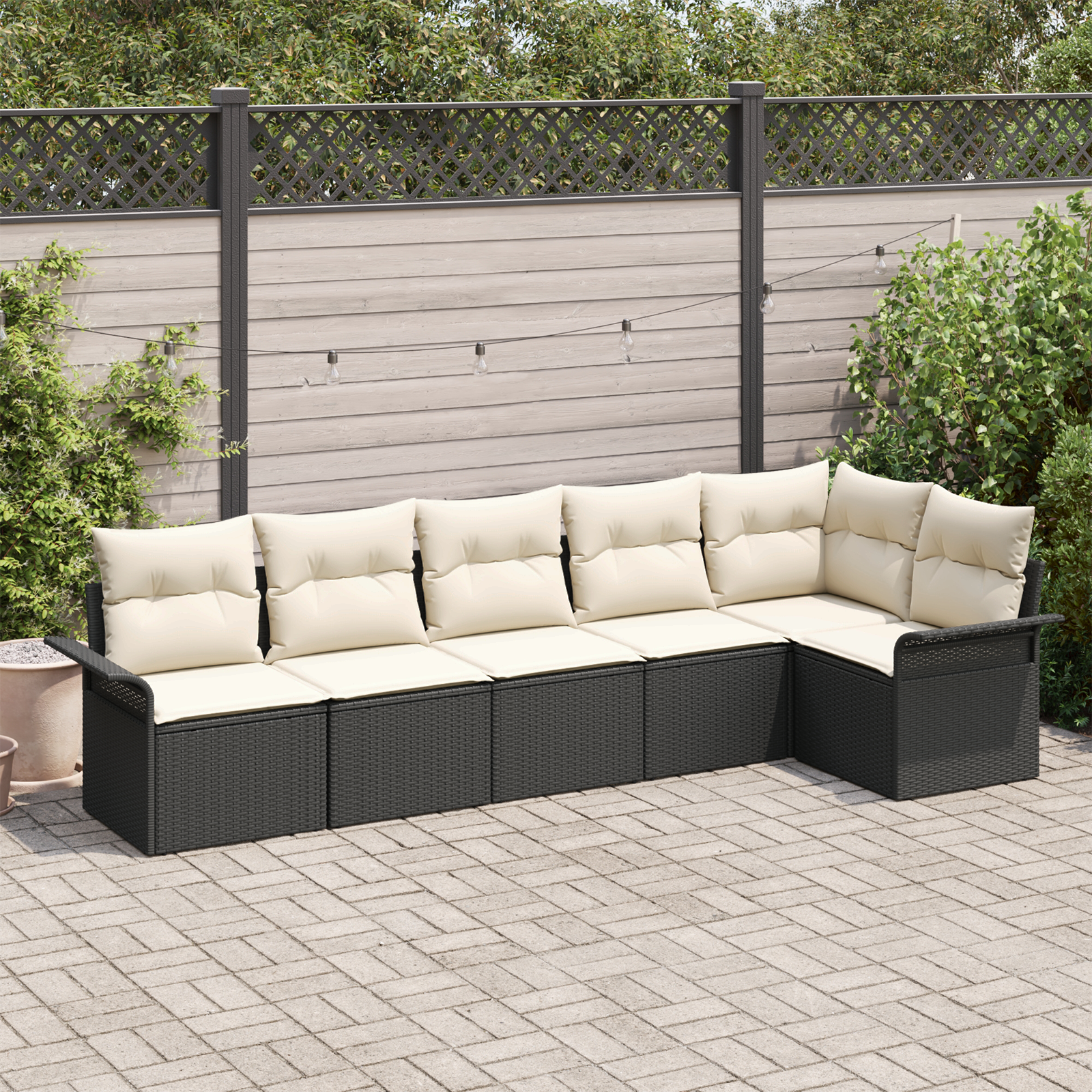 Sada zahradních pohovek s polštářem 6 pcs Černá Poly ratan