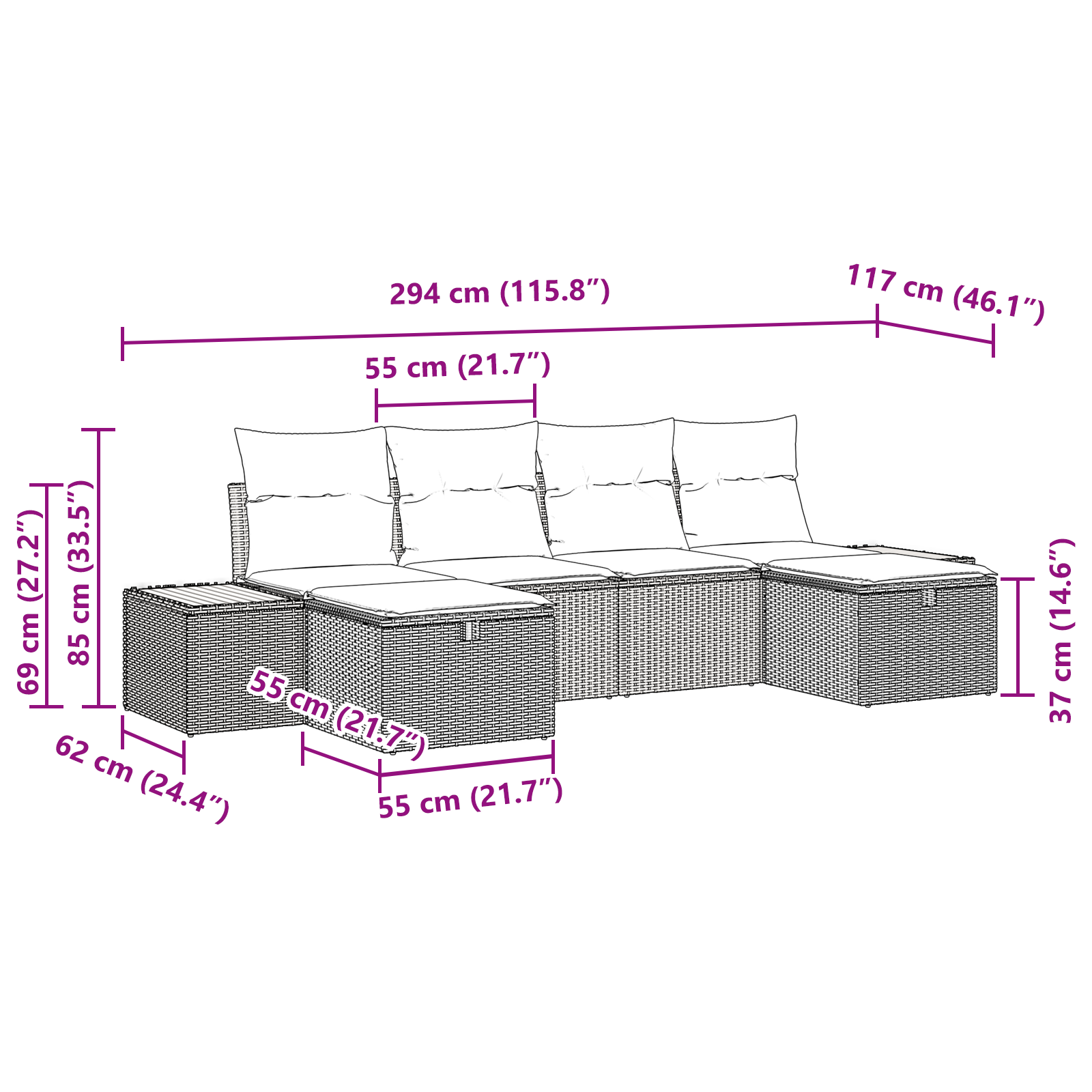 Modulární zahradní pohovková souprava spojuje elegantní design a praktickou funkčnost, což je ideální pro ozvláštnění vašeho venkovního prostoru. Tahle stylish souprava nabízí všestranné sezení, které se přizpůsobí různým potřebám vaší zahrady nebo terasy. V moderním stylu, s čistými liniemi a minimálními detaily, vypadá skvěle na jaře i v létě. Sestavte si rozložení, které vám nejlépe vyhovuje, a užijte si vizuální eleganci a odolnost.