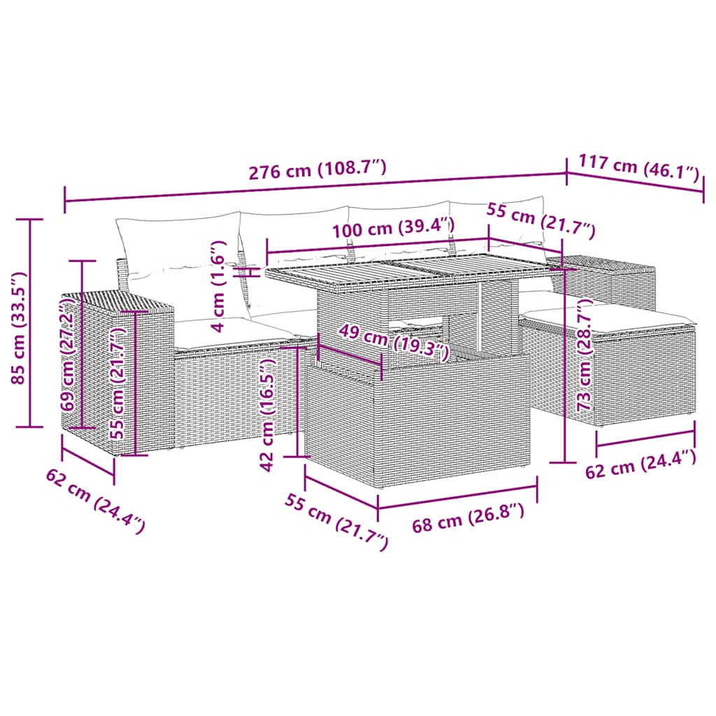Tato zahradní sedací souprava je dokonalým doplňkem vaší zahrady, terasy nebo dvorku a poskytne vám pohodlné a příjemné místo, kde si můžete povídat s rodinou a přáteli nebo jen tak odpočívat a užívat si pobyt venku.