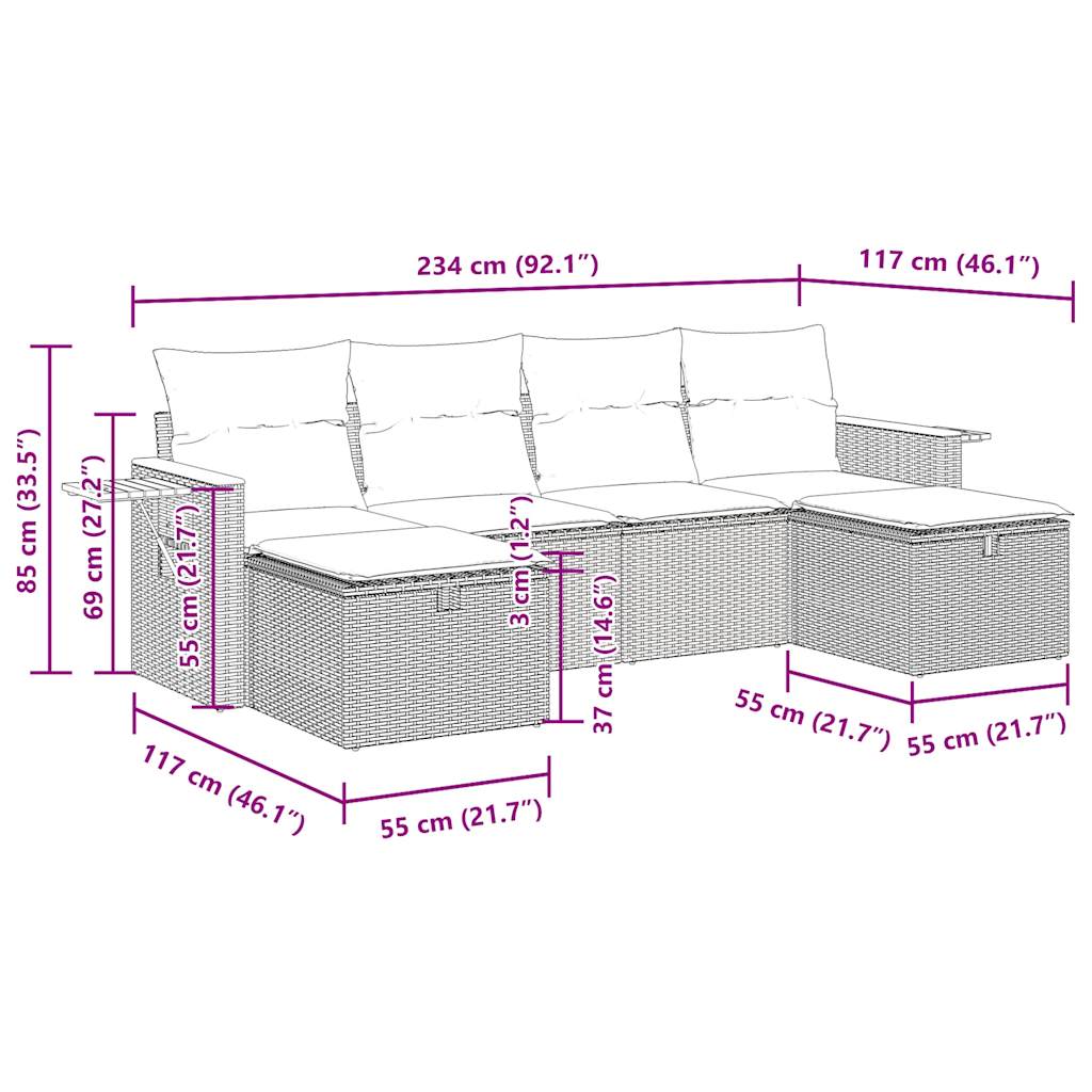 6dílná zahradní sedací souprava s poduškami béžová polyratan