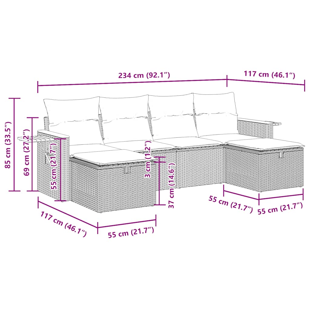 6dílná zahradní sedací souprava s poduškami béžová polyratan