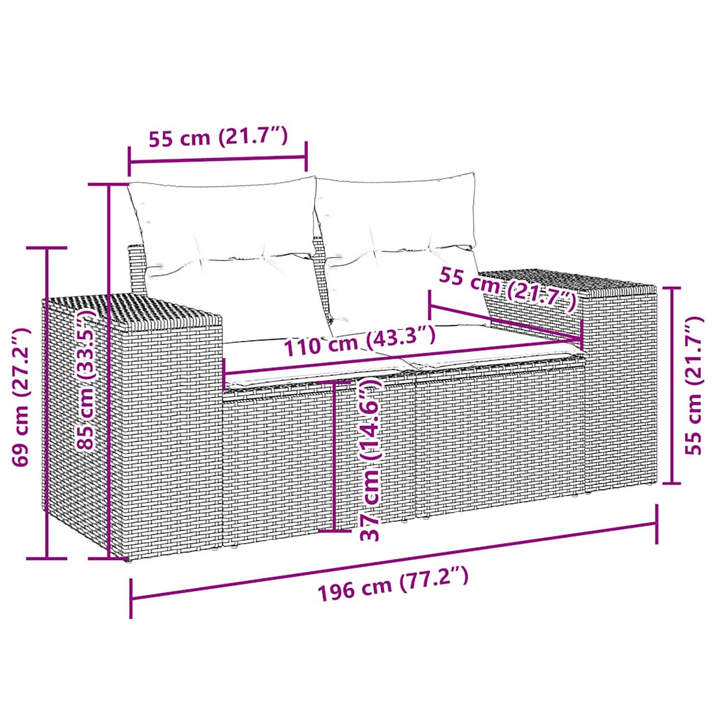 Tato zahradní sedací souprava je dokonalým doplňkem vaší zahrady, terasy nebo dvorku a poskytne vám pohodlné a příjemné místo, kde si můžete povídat s rodinou a přáteli nebo jen tak odpočívat a užívat si pobyt venku.