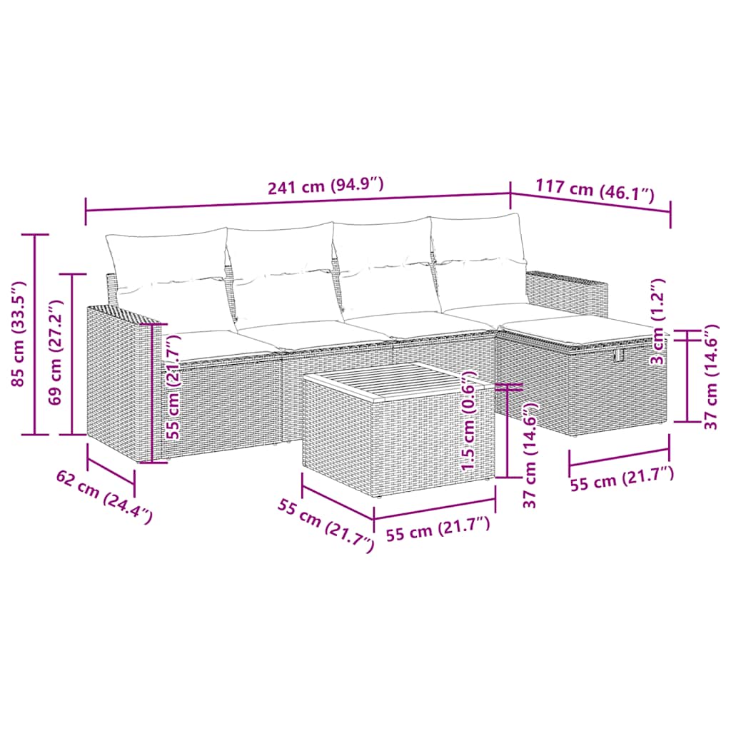 Tato zahradní sedací souprava je dokonalým doplňkem vaší zahrady, terasy nebo dvorku a poskytne vám pohodlné a příjemné místo, kde si můžete povídat s rodinou a přáteli nebo jen tak odpočívat a užívat si pobyt venku.