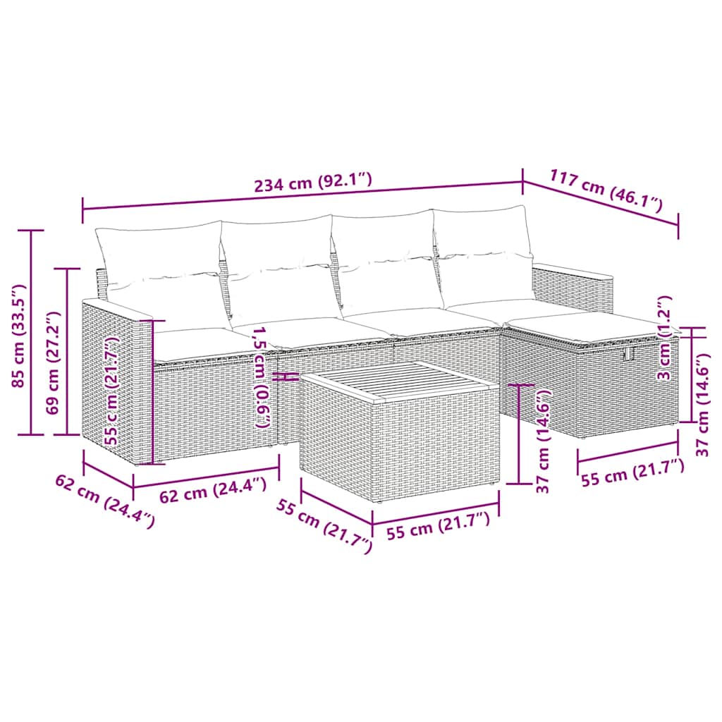 6dílná zahradní sedací souprava s poduškami černá polyratan