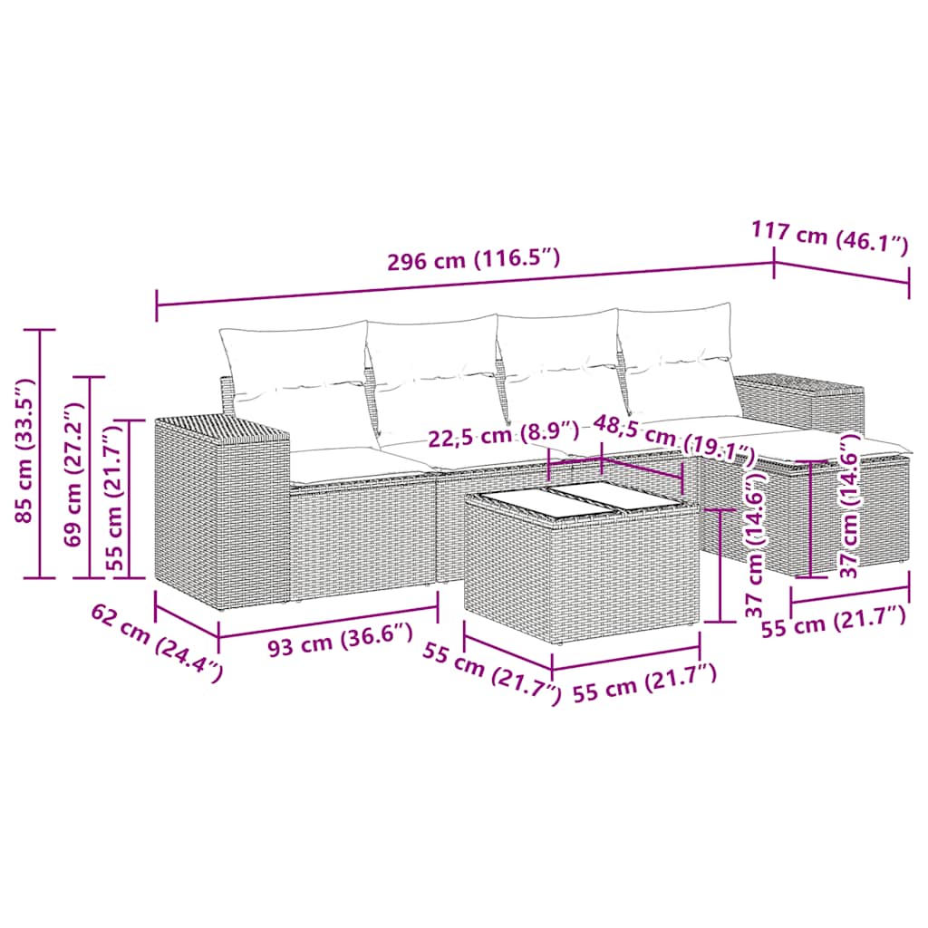 6dílná zahradní sedací souprava s poduškami černá polyratan