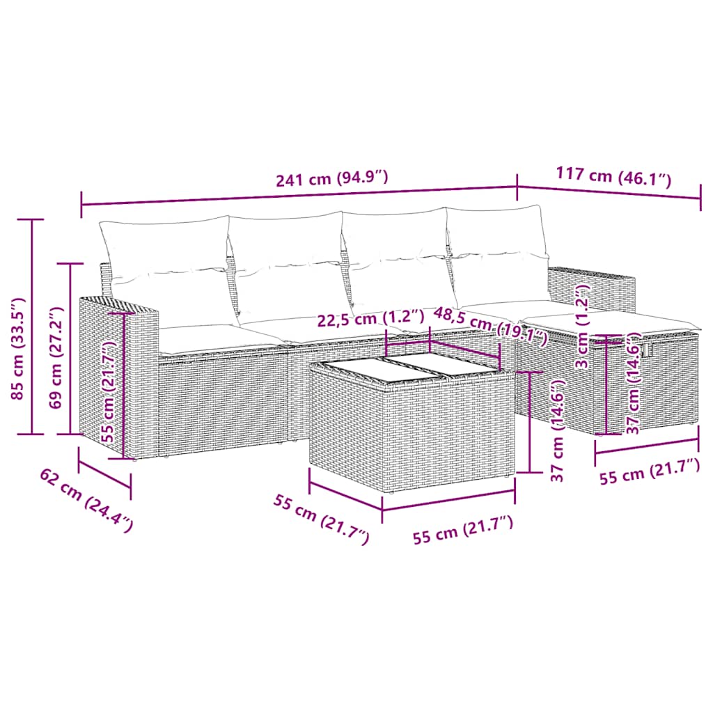 6dílná zahradní sedací souprava s poduškami hnědá polyratan