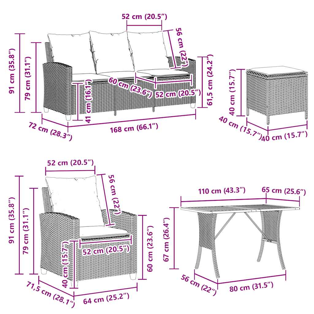 Tato zahradní sedací souprava je dokonalým doplňkem vaší zahrady, terasy nebo dvorku a poskytne vám pohodlné a příjemné místo, kde si můžete povídat s rodinou a přáteli nebo jen tak odpočívat a užívat si pobyt venku.