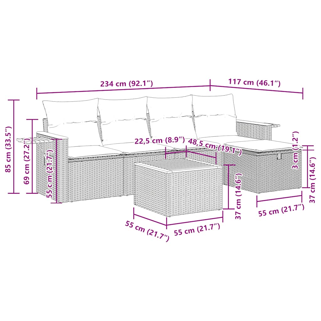 6dílná zahradní sedací souprava s poduškami šedá polyratan