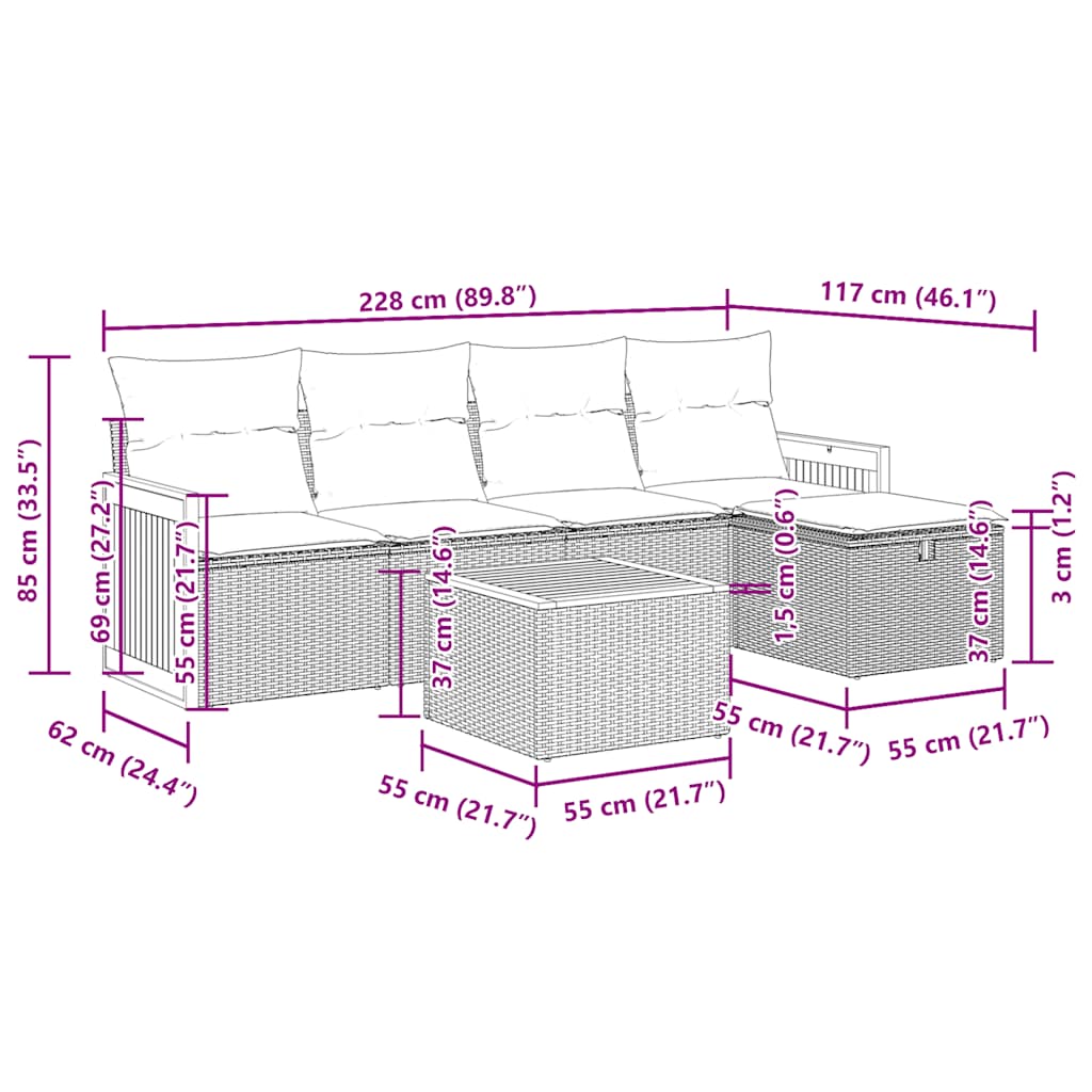Tato zahradní sedací souprava je dokonalým doplňkem vaší zahrady, terasy nebo dvorku a poskytne vám pohodlné a příjemné místo, kde si můžete povídat s rodinou a přáteli nebo jen tak odpočívat a užívat si pobyt venku.