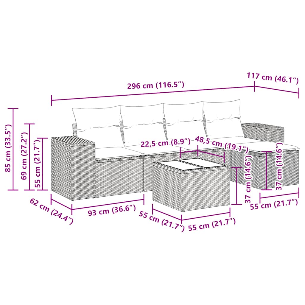 Tato zahradní sedací souprava je dokonalým doplňkem vaší zahrady, terasy nebo dvorku a poskytne vám pohodlné a příjemné místo, kde si můžete povídat s rodinou a přáteli nebo jen tak odpočívat a užívat si pobyt venku.