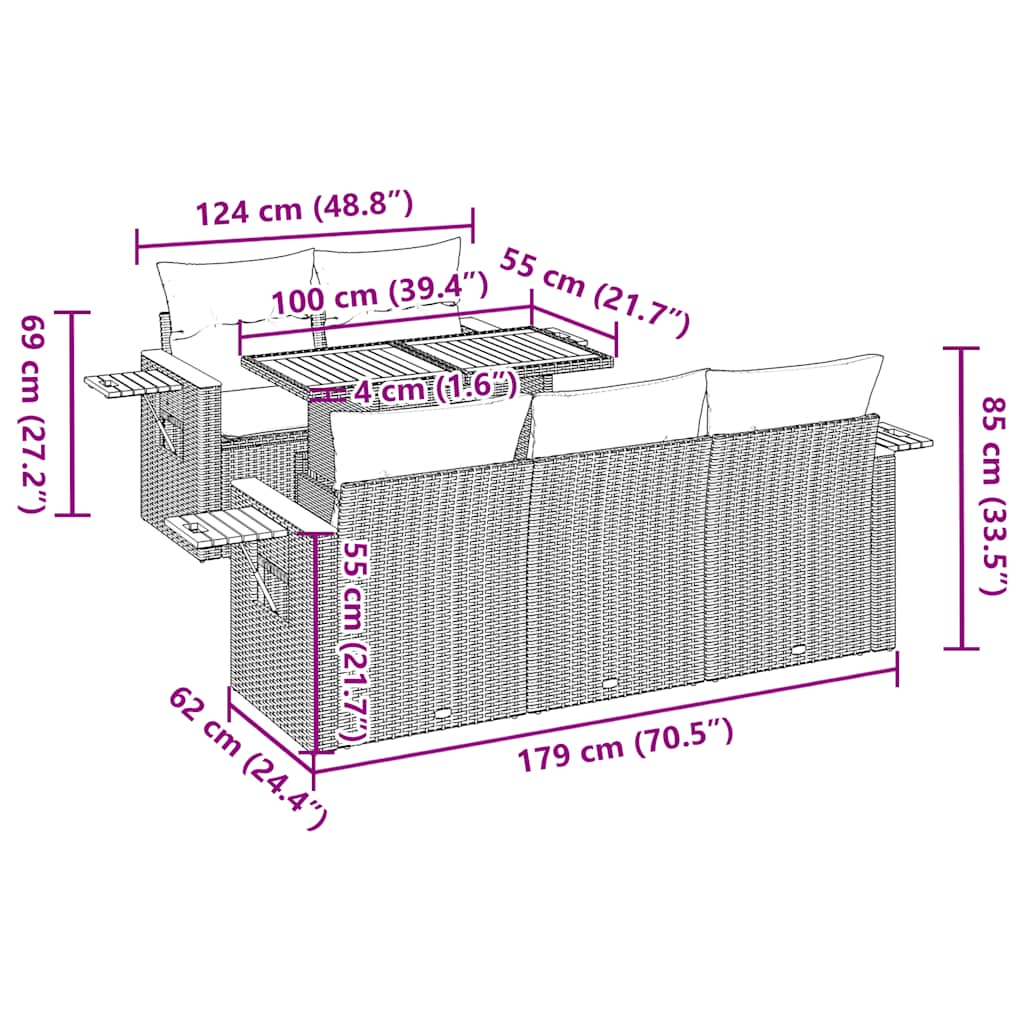 Tato zahradní sedací souprava je dokonalým doplňkem vaší zahrady, terasy nebo dvorku a poskytne vám pohodlné a příjemné místo, kde si můžete povídat s rodinou a přáteli nebo jen tak odpočívat a užívat si pobyt venku.