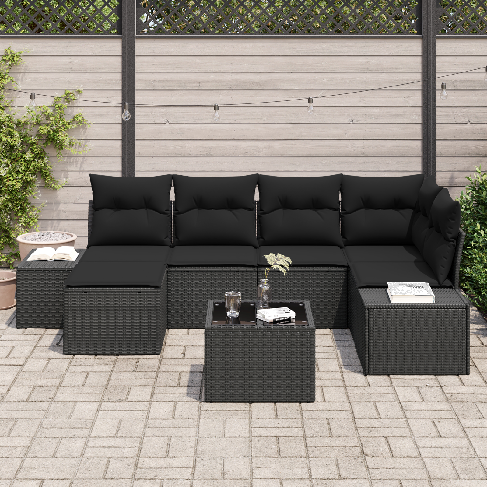 Sada zahradních pohovek s polštářem 6 pcs Černá polyratan