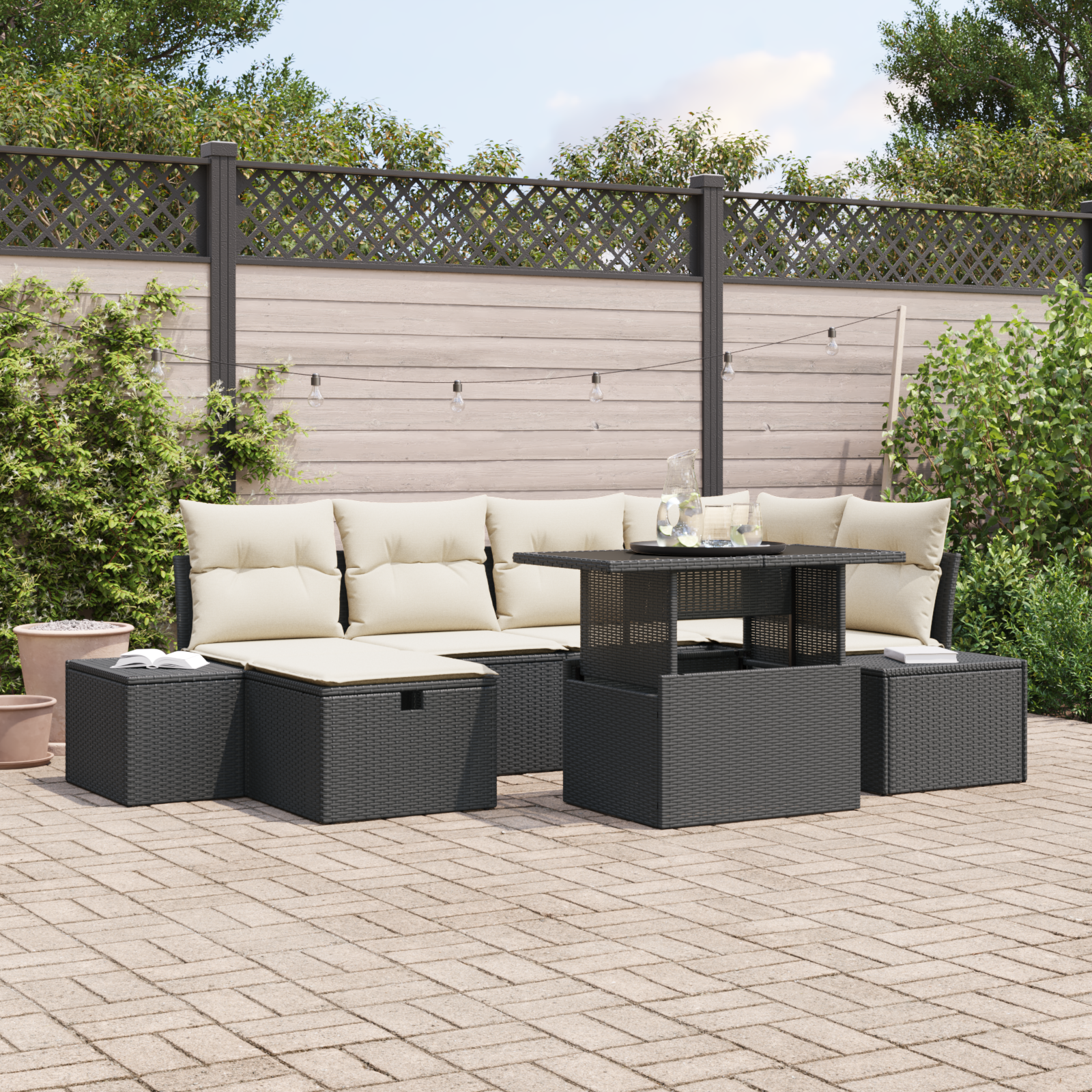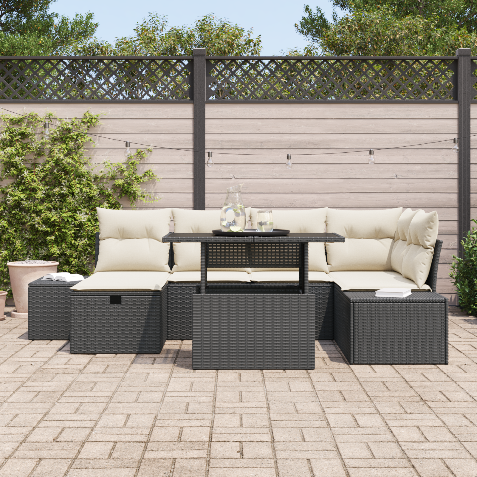 Modulární zahradní pohovka je skvělý venkovní nábytek, ideální na zahrady a terasy. Má moderní design, jednoduchý a funkční, což ji dělá skvělou do jakéhokoli venkovního prostoru. Nabízí útulné místo na setkání nebo poklidné relaxování. Tento set se vyznačuje elegantním a minimalistickým vzhledem, který zajišťuje maximální pohodlí pro lidi všech věkových kategorií. Tento stylový set se stane hvězdou každého venkovního prostoru díky svým čistým liniím a lákavému designu, takže je ideální na jarní a letní setkání.