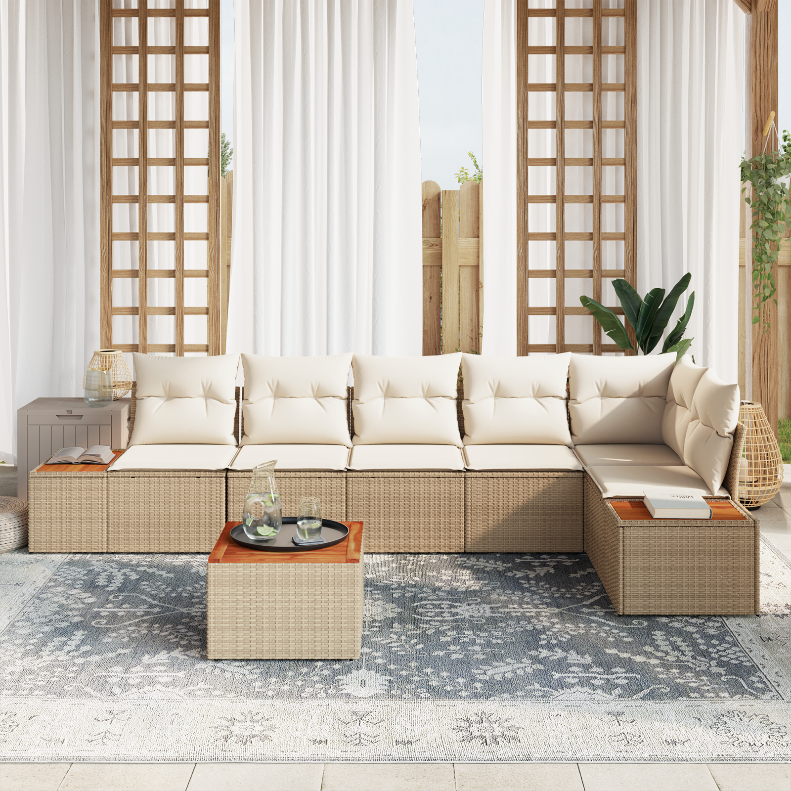 Sada zahradních pohovek s polštářem 7 pcs Béžová Poly ratan
