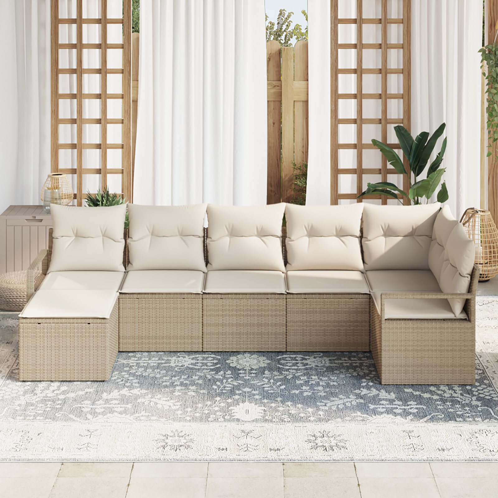 Sada zahradních pohovek je moderní a pohodlným řešením pro vaše venkovní prostory. S elegantním designem a geometrickým tvarem nabízí skvělé sezení, ideální pro společenské akce nebo odpolední odpočinek. Její styl skvěle ladí s moderními terasami a poskytuje pohodlí pro ty, kteří mají rádi venkovní život.