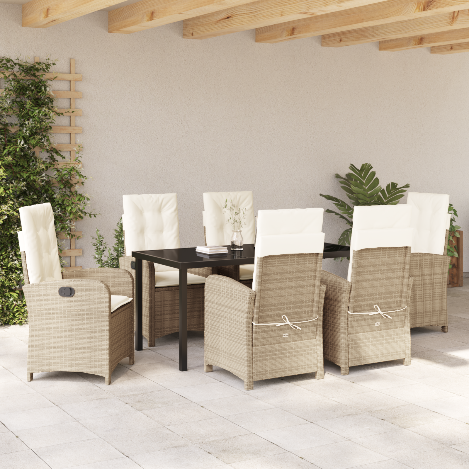 Zahradní jídelní souprava s polštářem 7 pcs Béžová polyratan