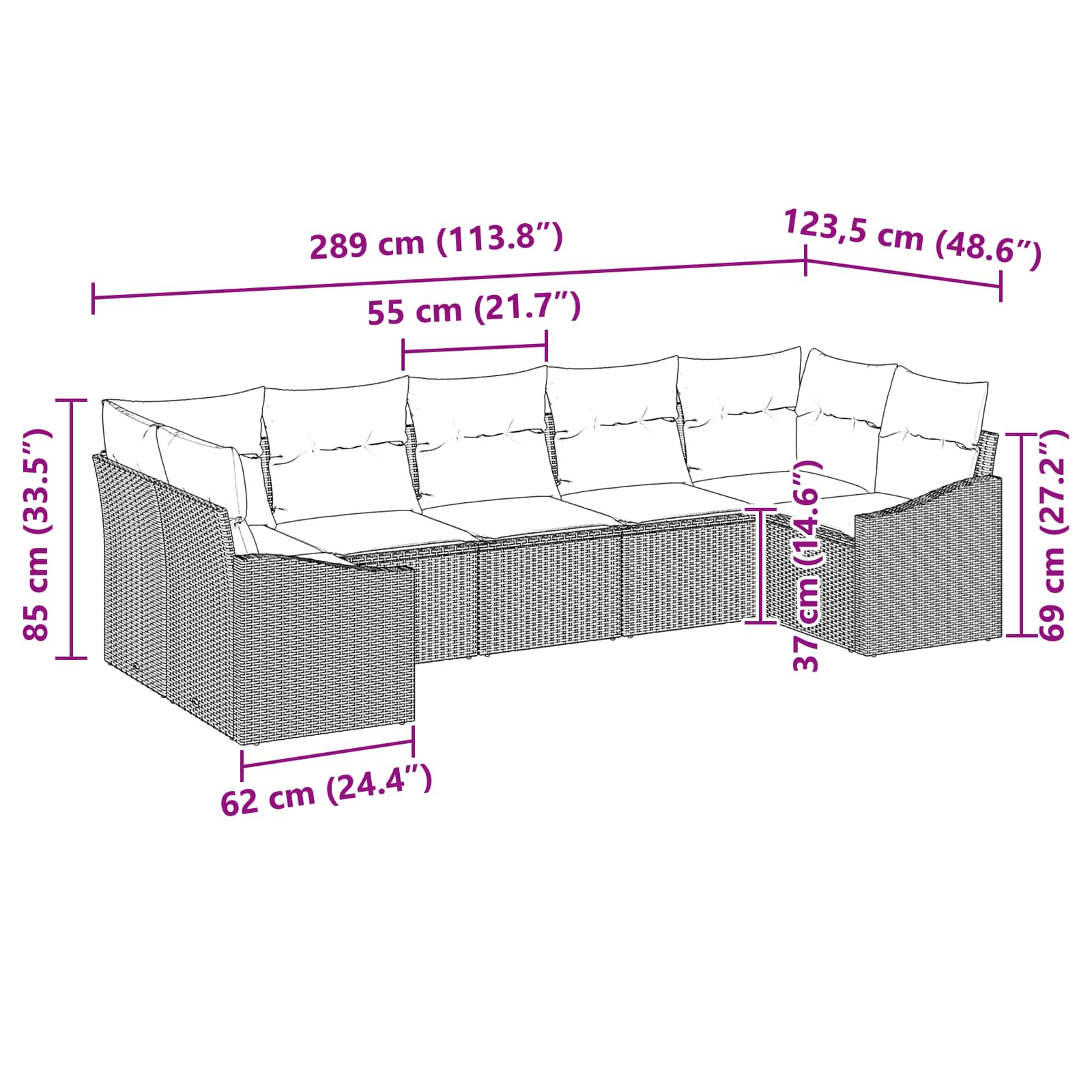 Tento modulární zahradní sofa set spojuje elegantní design a praktický styl, ideální pro každé venkovní místo. Perfektní na terasy nebo zahrady, ladí estetiku s funkčností. Čisté linie a modulární design umožňují přizpůsobení pro různé potřeby sezení. Jeho moderní vzhled hladce zapadne do jakéhokoli prostoru a nabídne pohodlné sezení pro setkání s přáteli nebo klidné chvilky.