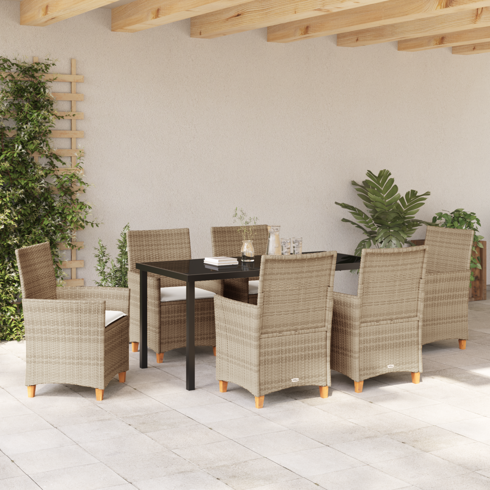 Zahradní jídelní souprava 7 pcs Béžová polyratan