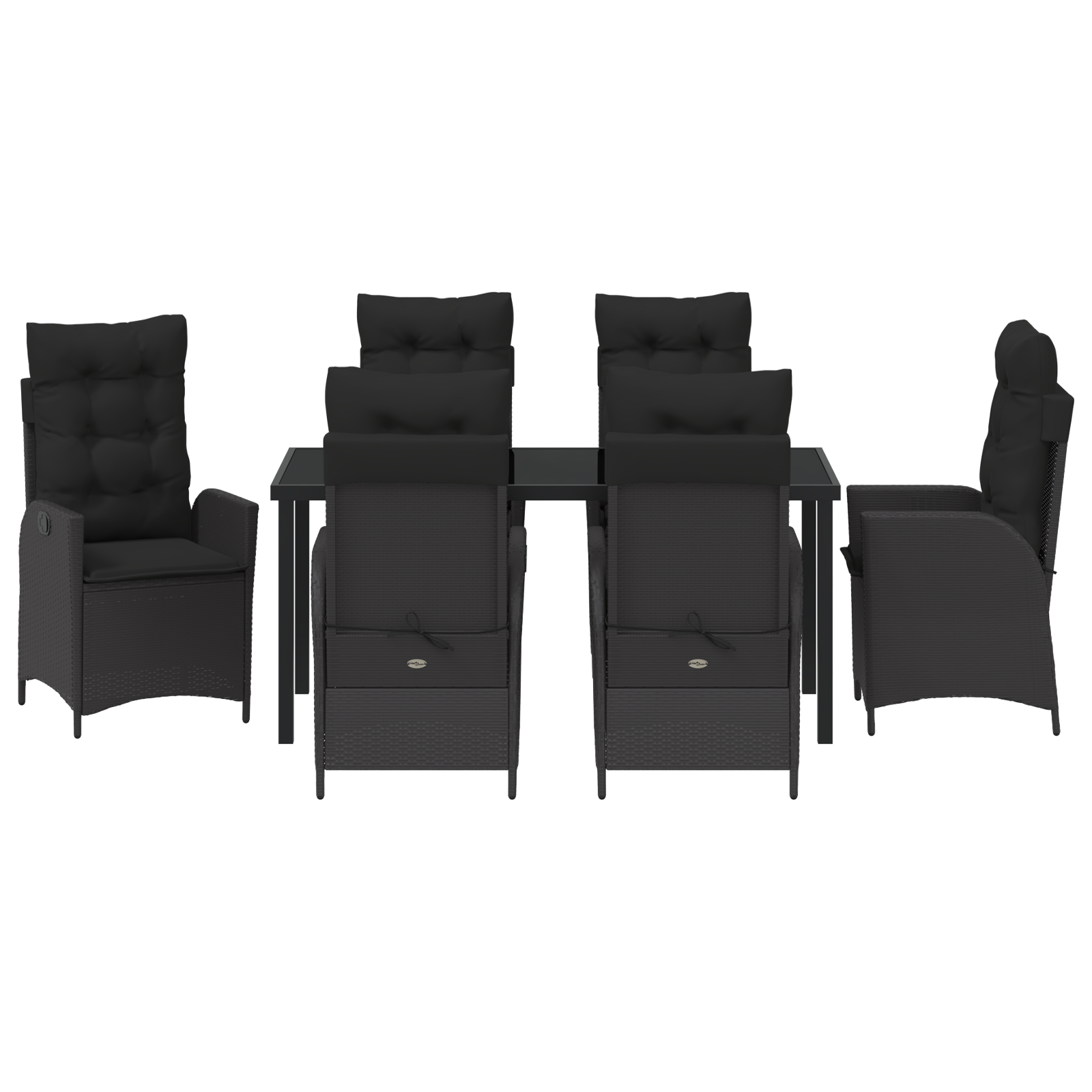 Zahradní jídelní souprava s polštářem 7 pcs Černá polyratan