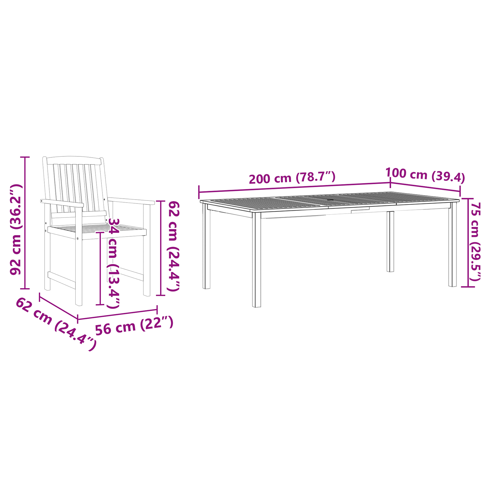 Tento rustikální zahradní jídelní set promění jakýkoli venkovní prostor svým teplým a vítajícím designem, který se krásně hodí k přírodní kráse vaší zahrady nebo terasy. Vyrobený z masivního akáciového dřeva, které je známé svou trvanlivostí, slibuje kombinaci elegance a robustnosti, aby odolal venkovním podmínkám. Je to skvélé místo pro rodinná jídla a zábavu na slunečných dnech.