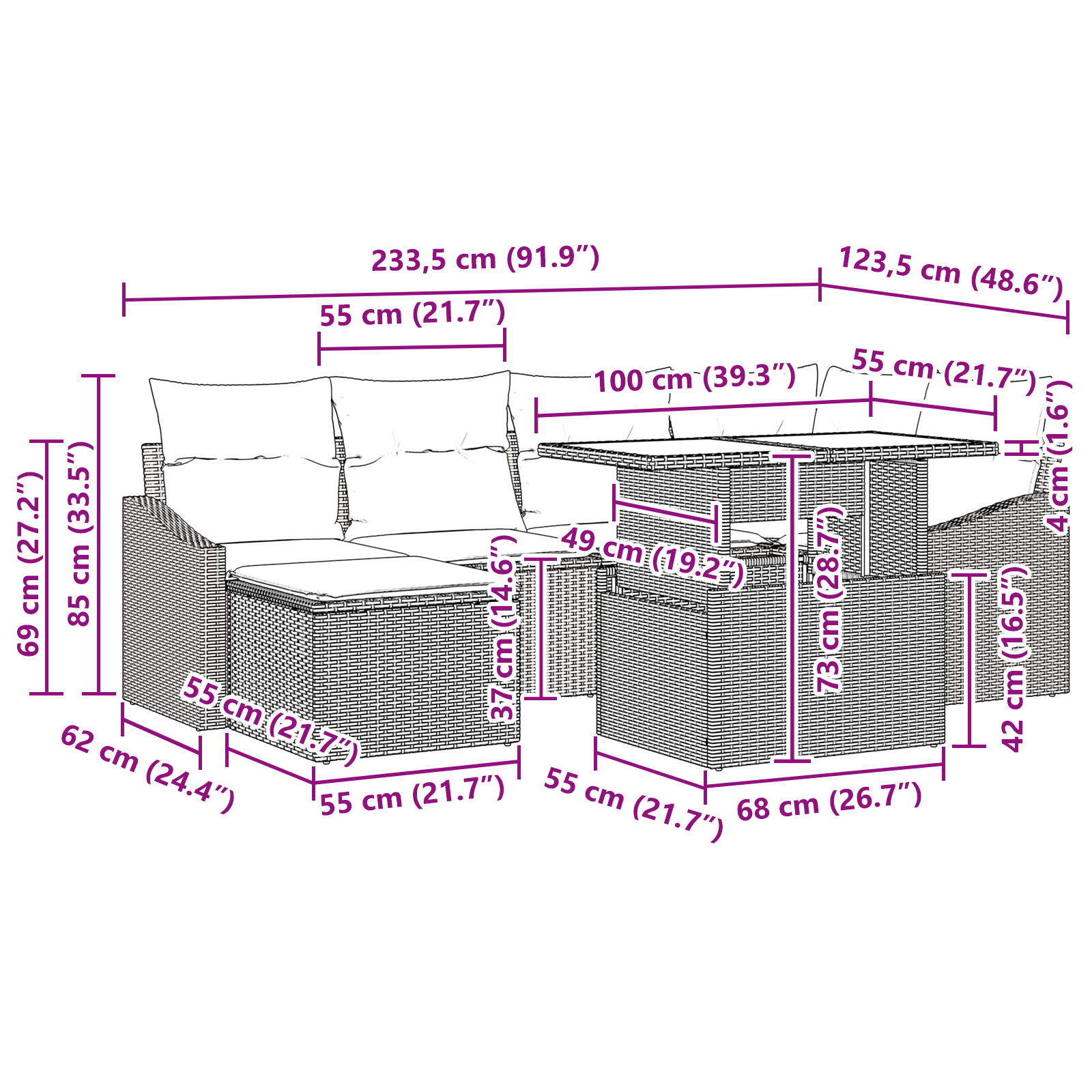 Sada zahradních pohovek s polštářem 7 pcs Černá