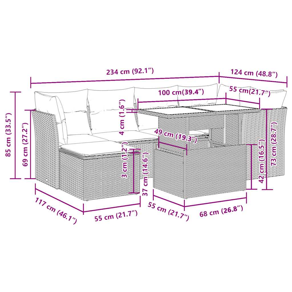 Tato zahradní sedací souprava je dokonalým doplňkem vaší zahrady, terasy nebo dvorku a poskytne vám pohodlné a příjemné místo, kde si můžete povídat s rodinou a přáteli nebo jen tak odpočívat a užívat si pobyt venku.