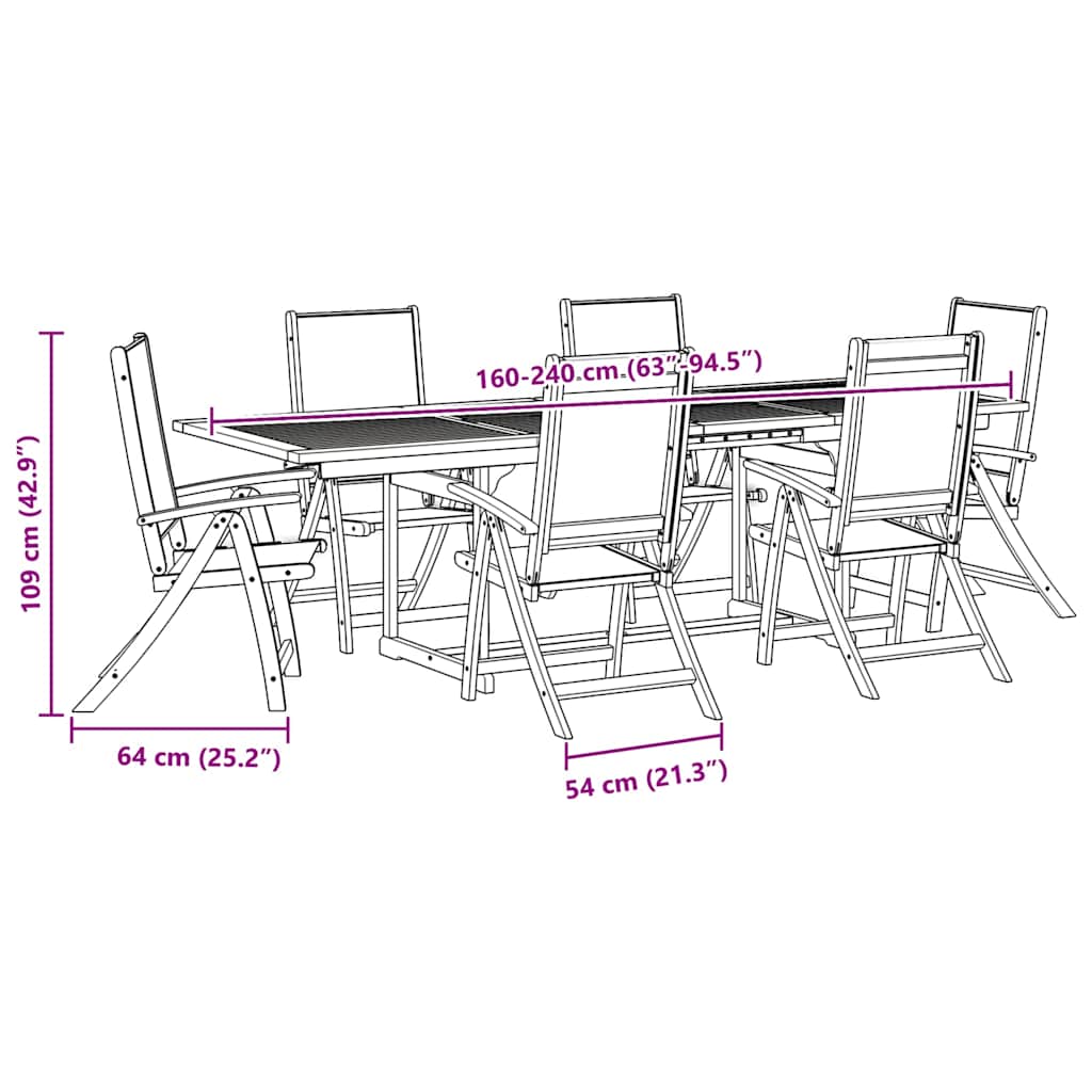 7dílný zahradní jídelní set masivní akáciové dřevo a textilen