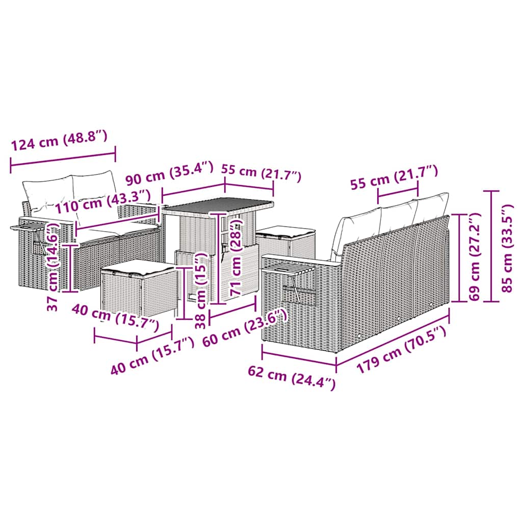 Tato zahradní pohovková souprava je dokonalým příkladem moderní elegance. Bez problemu se hodí na zahradu nebo terasu. S tkanou texturou a minimalistickým designem přináší pohodlí a hezký vzhled. Navržena pro jaro a léto, zve vás k relaxaci a užívání sluníčka. Představte si, jak si na ní odpočinete během teplého odpoledne, poly ratanový materiál je jak příjemný, tak stylový. Je tak pohodlná, že budete chtít trávit hodiny povídáním a odpočinkem venku.