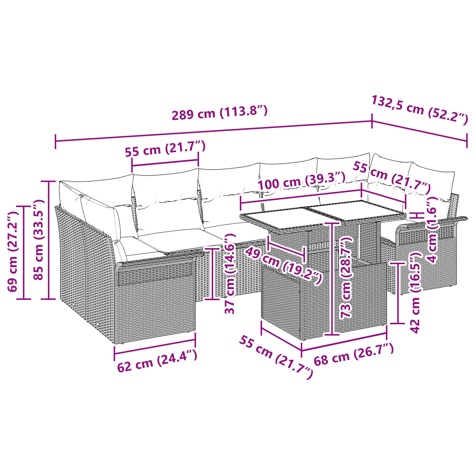 Tahle modulární zahradní sedačka je absolutní hit pro relaxaci venku na vaší zahradě nebo terase. Její moderní, minimalistický design má čisté linie a funkční tvar, který vás zve k odpočinku. Flexibilita vám umožní uspořádat ji podle jakékoli příležitosti, od malých setkání až po velké párty. Kombinace polyratanu a akáciového dřeva dává skvělou texturu a přírodní vzhled, což vytváří útulnou atmosféru ideální pro jarní a letní dny. Ať už hostíte přátele, nebo si vychutnáváte klidné odpoledne, tahle souprava se hodí do všech typů prostředí.