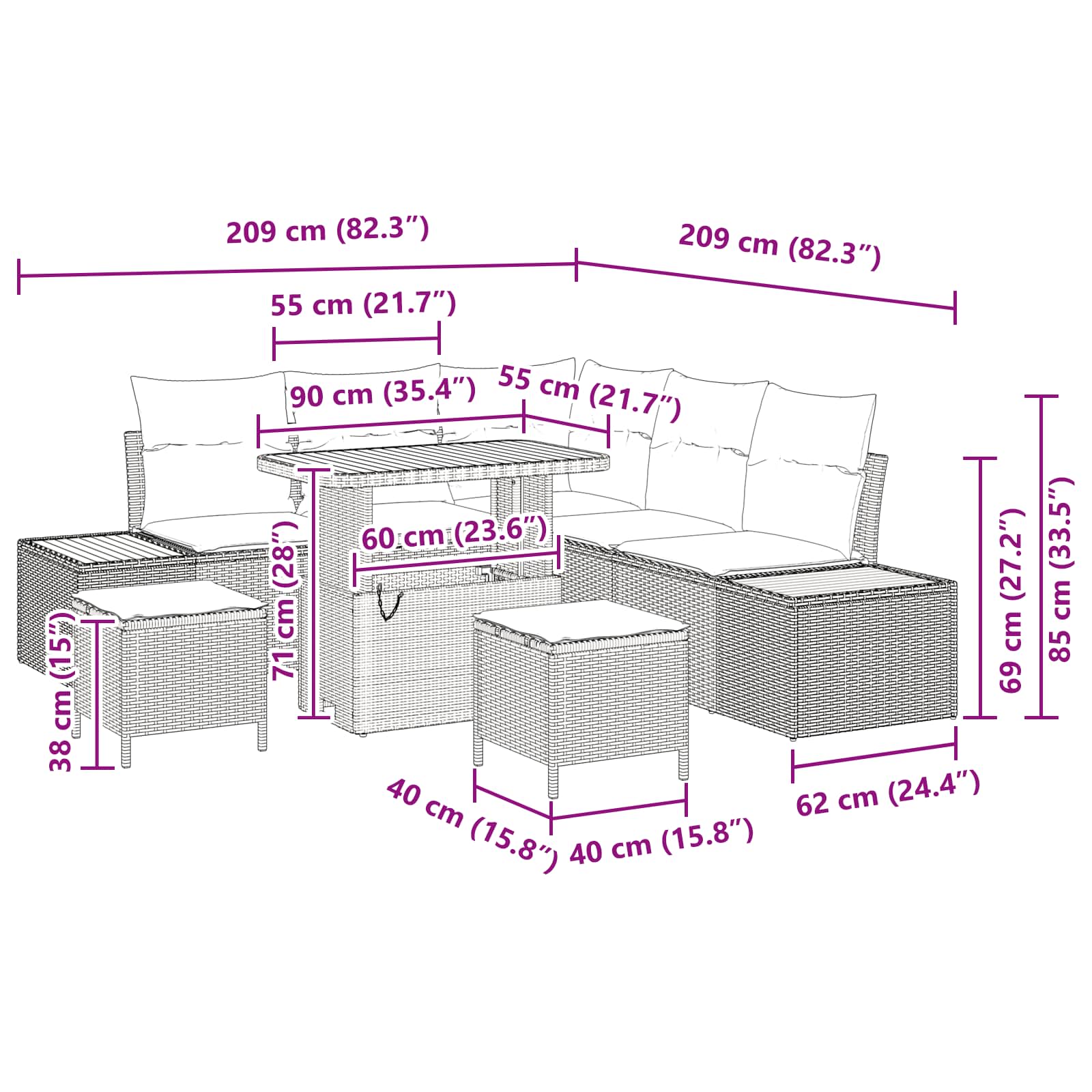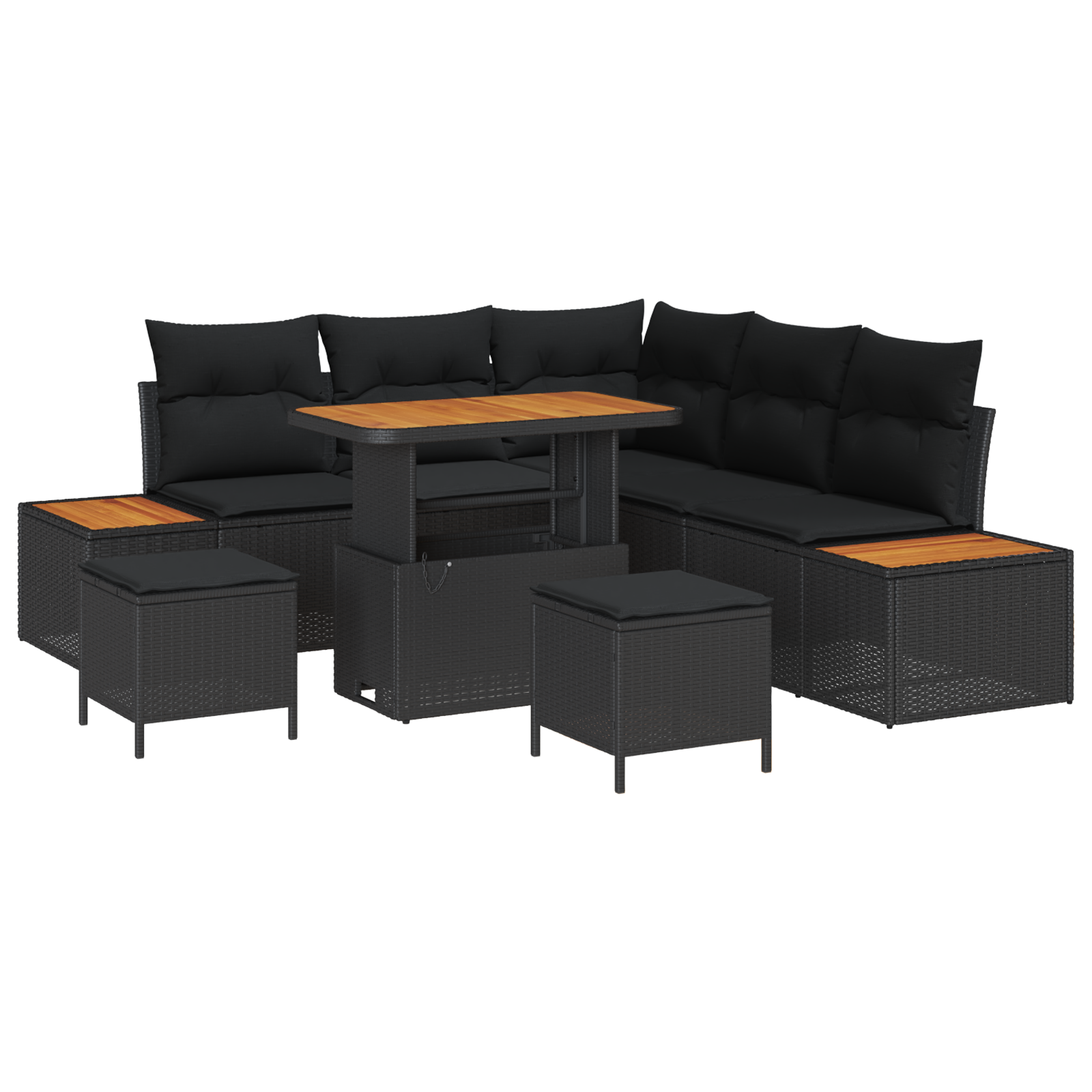 Tato moderní zahradní pohovková sada přináší eleganci a pohodlí do vašich venkovních prostor. S hladkým designem a funkčností je ideální pro hosty nebo poklidné večery. Kombinace odolného poly ratanu a pohodlných pěnových polštářů je perfektní pro váš venkovní odpočinek. Modulární uspořádání umožňuje přizpůsobit set pro jakýkoli dvorek nebo terasu, takže se stane součástí vašich odpočinkových chvil.