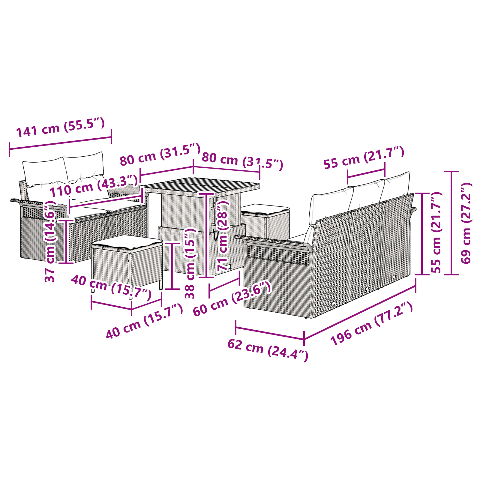 Tato pohovková sada skvěle zapadá do současného stylu, aniž by obětovala funkčnost. S čistými liniemi a minimálním zdobením pozvedává každý venkovní prostor a stává se neodmyslitelnou součástí zahrad nebo teras. Je ideální pro víkendové relaxace a nabízí příjemné místo pro odpočinek a zábavu. Elegantní design se hodí k přirozené kráse okolí. Ať už na denní slunění nebo večerní posezení, tato pohovkovka dokáže proměnit jakýkoli prostor na útulné místečko. Je odolná pro delší venkovní pobyty a skvěle snáší sezónní změny, což zaručuje dlouhou životnost a uživatelský komfort. Lehký design umožňuje příjemné používání a vzdušný pocit, a to se hodí do každého zahradního prostoru.
